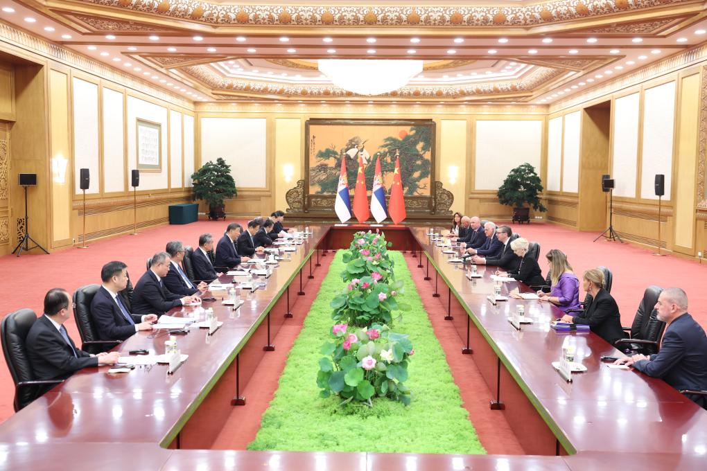 Der chinesische Staatspräsident Xi Jinping trifft sich mit dem serbischen Präsidenten Aleksandar Vucic in der Großen Halle des Volkes in Chinas Hauptstadt Beijing, 4. September 2025. Vucic hält sich in China auf, um an den Gedenkveranstaltungen zum 80. Jahrestag des Sieges im Widerstandskrieg des chinesischen Volkes gegen die japanische Aggression und im weltweiten antifaschistischen Krieg teilzunehmen. (Quelle: Xinhua/Ding Lin)