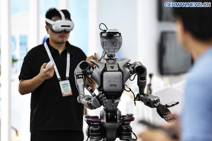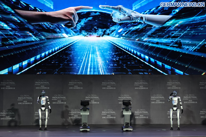 SHENYANG, 7. September 2025 (Xinhua) -- Ein Roboter wird im Ausstellungsbereich der Global Industrial Internet Conference 2025 in Shenyang in der nordostchinesischen Provinz Liaoning präsentiert, 6. September 2025. Unter dem Motto „Digital New Chapter, Intelligent New Quality” begann hier am Samstag die Global Industrial Internet Conference 2025, die bis zum 8. September läuft. (Xinhua/Pan Yulong)
