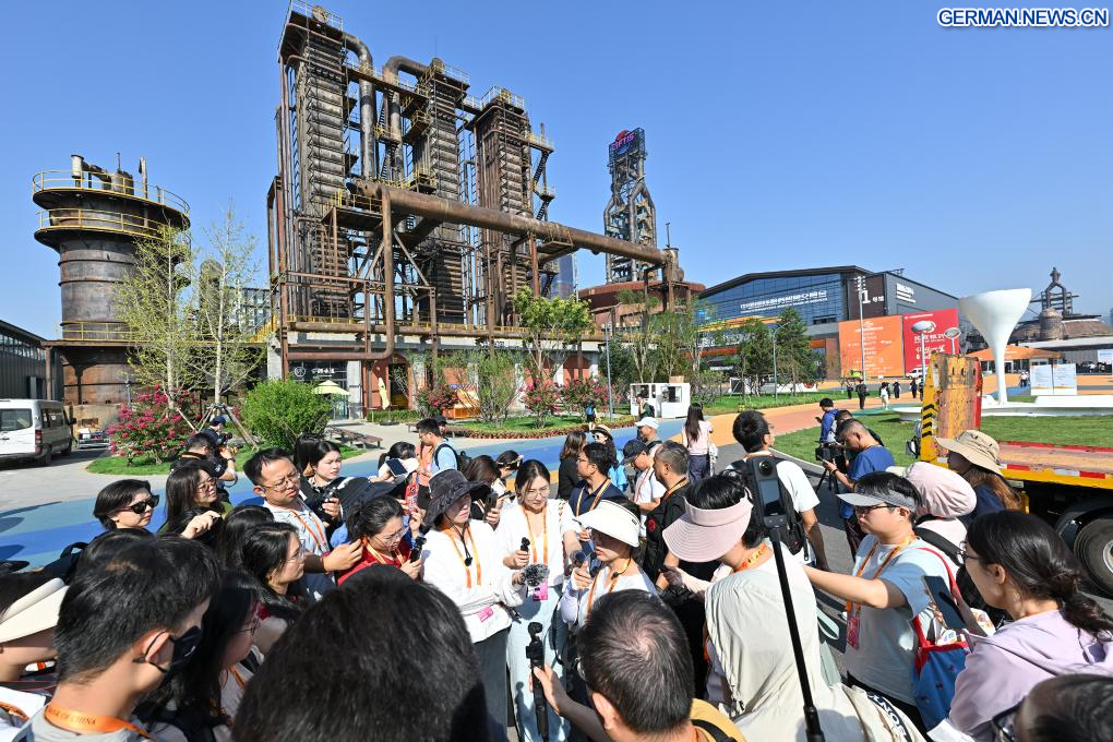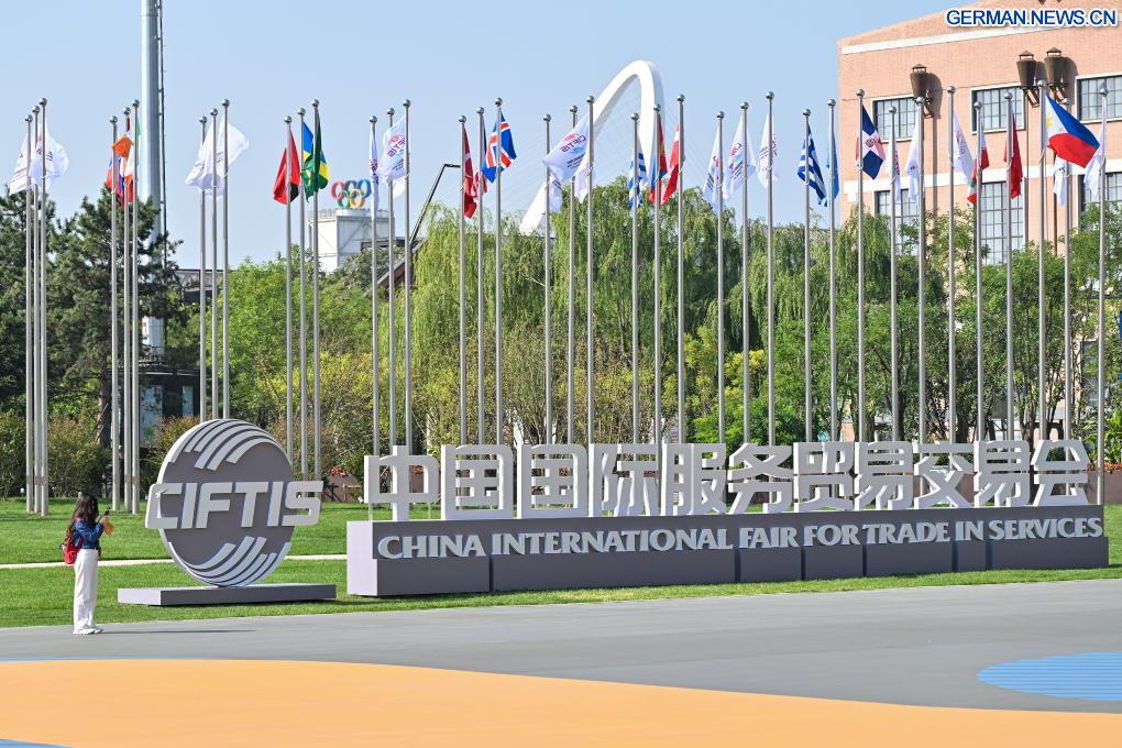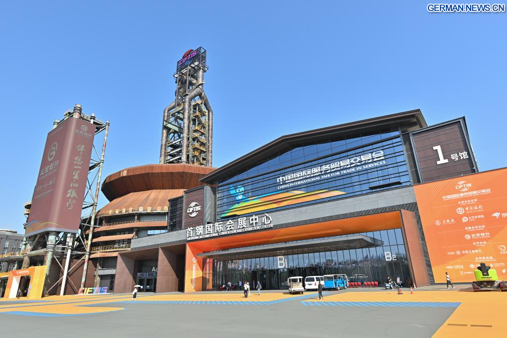 BEIJING, 9. September 2025 (Xinhuanet) -- Medienfachleute arbeiten im Shougang-Park, dem Veranstaltungsort der bevorstehenden China International Fair for Trade in Services (CIFTIS) in Chinas Hauptstadt Beijing, 9. September 2025. Die diesjährige CIFTIS findet vom 10. bis 14. September statt. (Quelle: Xinhua/Li Xin)
