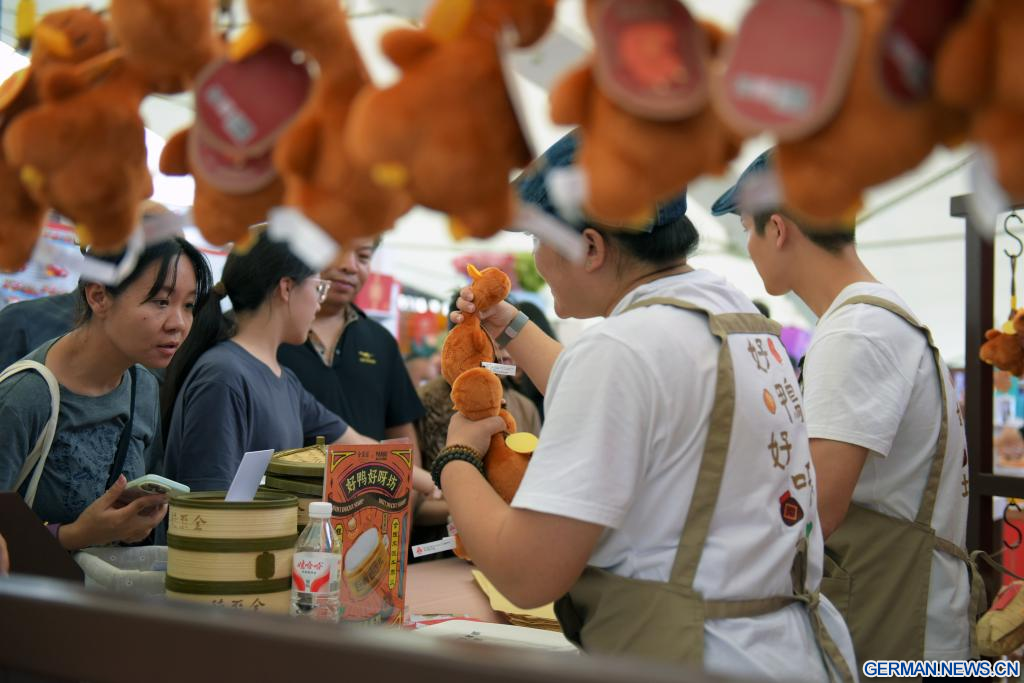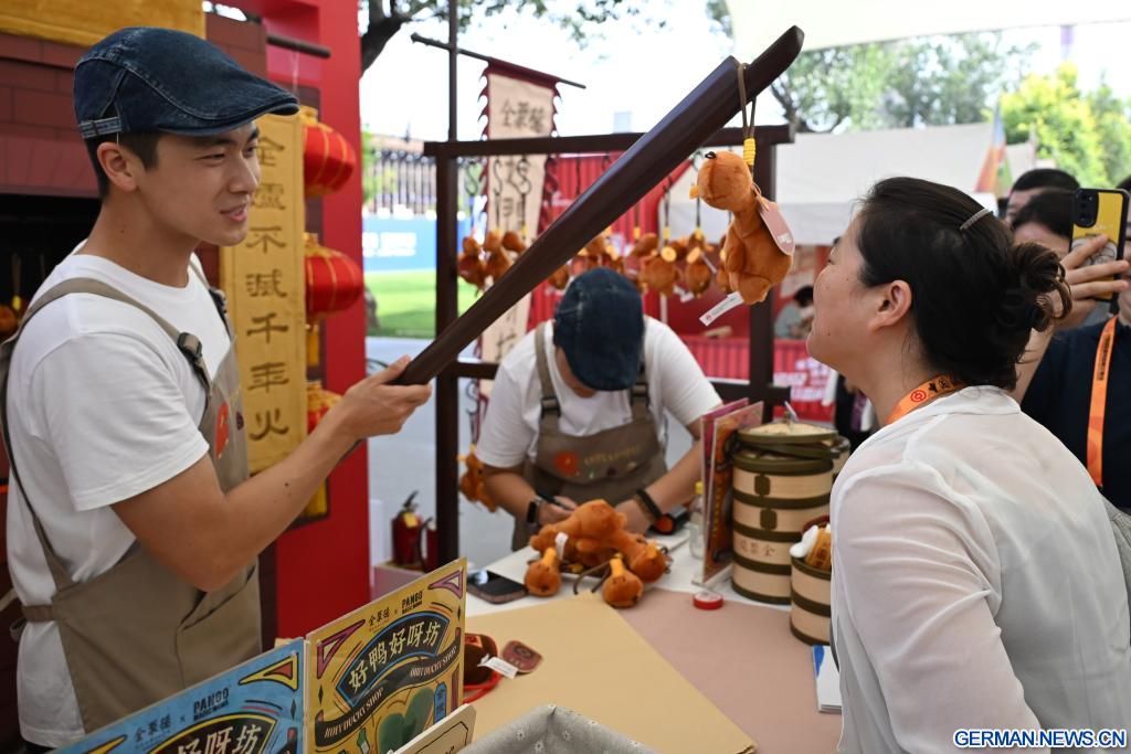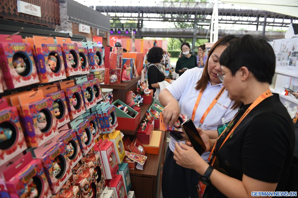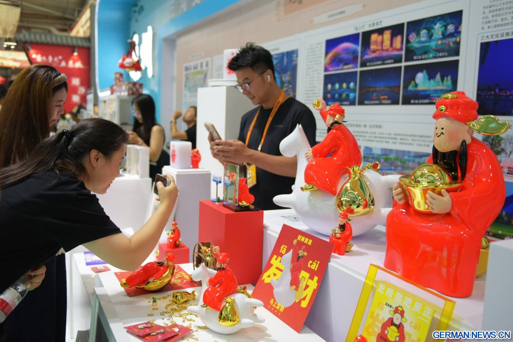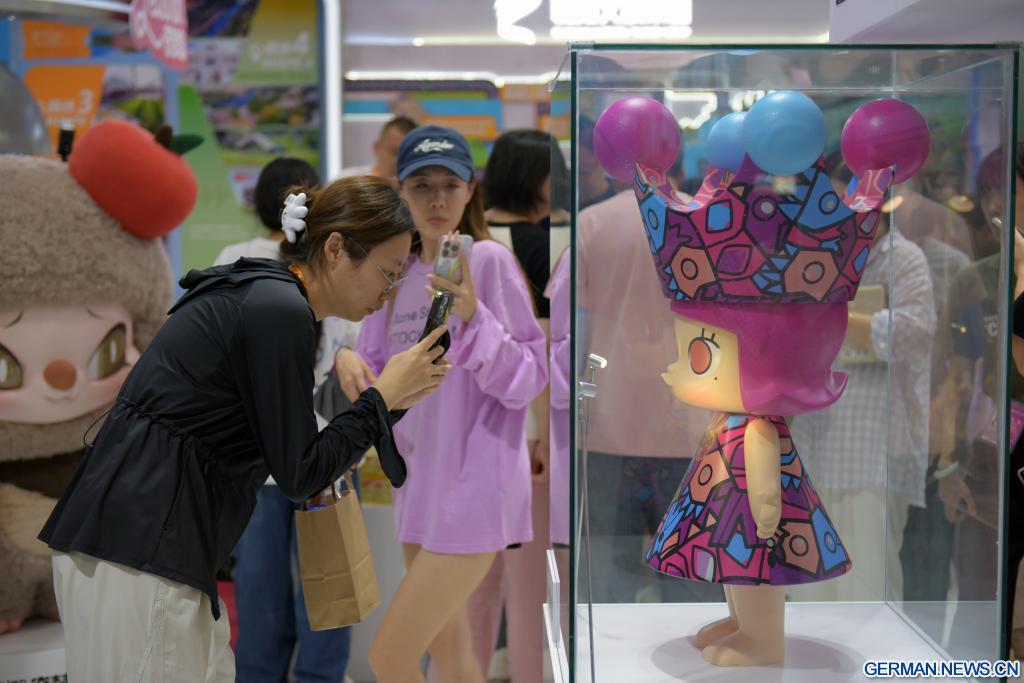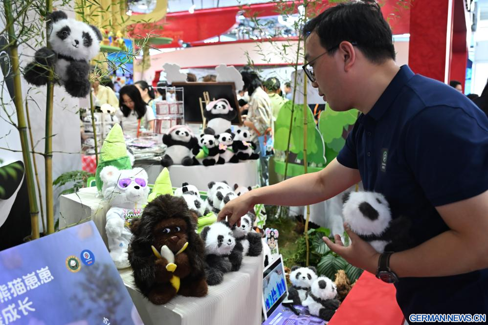 BEIJING, 12. September 2025 (Xinhuanet) -- Kulturelle und kreative Produkte mit Panda-Motiven sind auf der China International Fair for Trade in Services (CIFTIS) 2025 in Chinas Hauptstadt Beijing ausgestellt, 11. September 2025. Die CIFTIS 2025 findet vom 10. bis 14. September im Shougang-Park in Beijing statt. Die diesjährige Messe bietet eine breite Palette kultureller und kreativer Produkte, die bei den Besuchern sehr beliebt sind. (Quelle: Xinhua/Zhang Xinjing)
