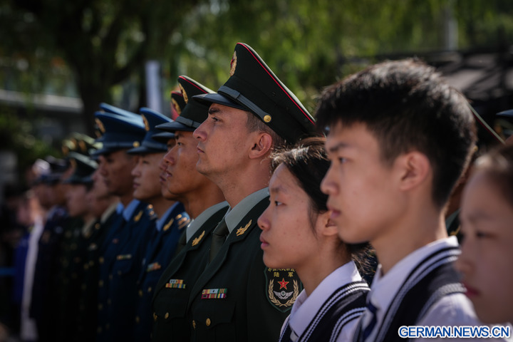 Hunderte von Menschen, darunter Veteranen und ihre Angehörigen, versammelten sich auf dem Platz des 9.18 Historical Museum in Shenyang, der Hauptstadt der Provinz Liaoning, um diejenigen zu ehren, die im Widerstandskrieg des chinesischen Volkes gegen die japanische Aggression gekämpft haben. (Xinhua/Pan Yulong)