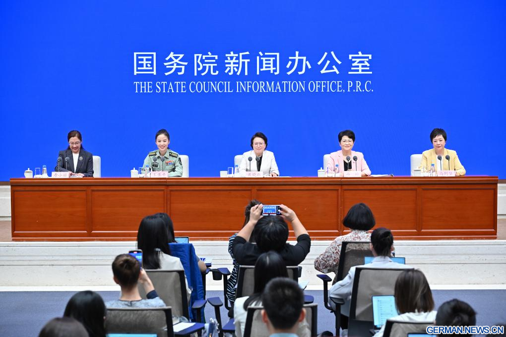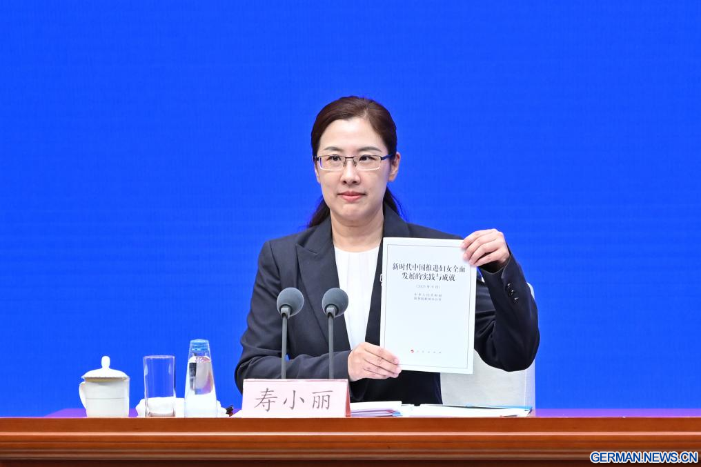 BEIJING, 19. September 2025 (Xinhuanet) -- Das Informationsbüro des Staatsrats (SCIO) hält eine Pressekonferenz zur Veröffentlichung des Weißbuchs mit dem Titel „Chinas Erfolge bei der umfassenden Entwicklung von Frauen im neuen Zeitalter“ in Chinas Hauptstadt Beijing ab, 19. September 2025. (Quelle: Xinhua/Li Xin)