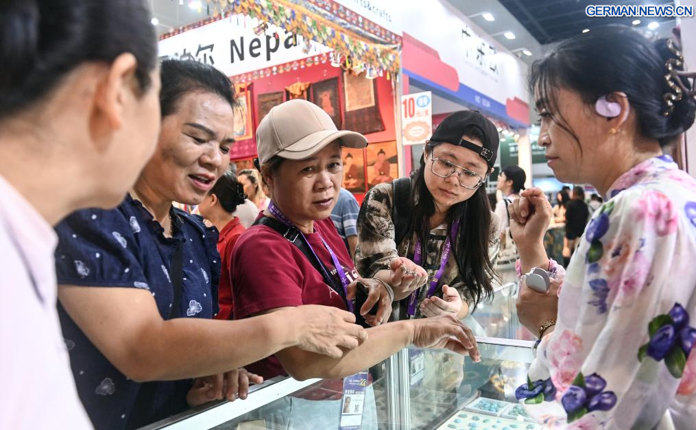 NANNING, 20. September 2025 (Xinhuanet) -- Menschen besuchen die 22. China-ASEAN-Expo in Nanning im Autonomen Gebiet Guangxi der Zhuang-Nationalität in Südchina, 20. September 2025. Die Expo wurde am Samstag für die Öffentlichkeit eröffnet. (Quelle: Xinhua/Hu Qiusi)