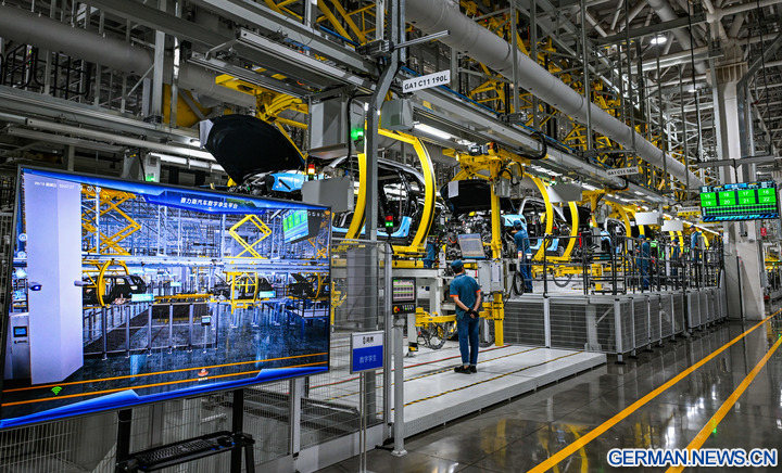 Als bedeutender Standort der Automobilindustrie produzierte Chongqing in den ersten acht Monaten des Jahres 1.659 Millionen Fahrzeuge, was einem Anstieg von 7,6 Prozent gegenüber dem Vorjahr entspricht. Die Produktion von Fahrzeugen mit neuer Energie (NEVs) stieg im gleichen Zeitraum um 31 Prozent auf 690.000 Einheiten. (Xinhua/Wang Quanchao)