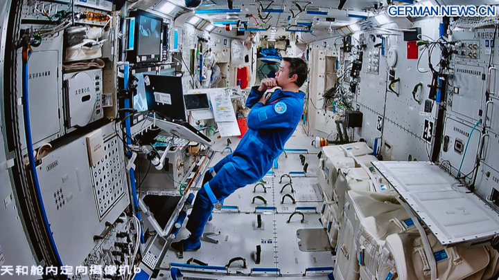 BEIJING, 26. September 2025 (Xinhua) -- Das im Raumfahrtkontrollzentrum Beijing (BACC) aufgenommene Bild zeigt den „Shenzhou-20“-Astronauten Chen Dong bei der Arbeit in der chinesischen Raumstation, 25. September 2025. Die „Shenzhou-20“-Besatzung an Bord der chinesischen Raumstation hat laut der Behörde für bemannte Raumfahrt in China (CMSA) am Freitag den vierten Außenbordeinsatz abgeschlossen. (Xinhua/Li Minggang)