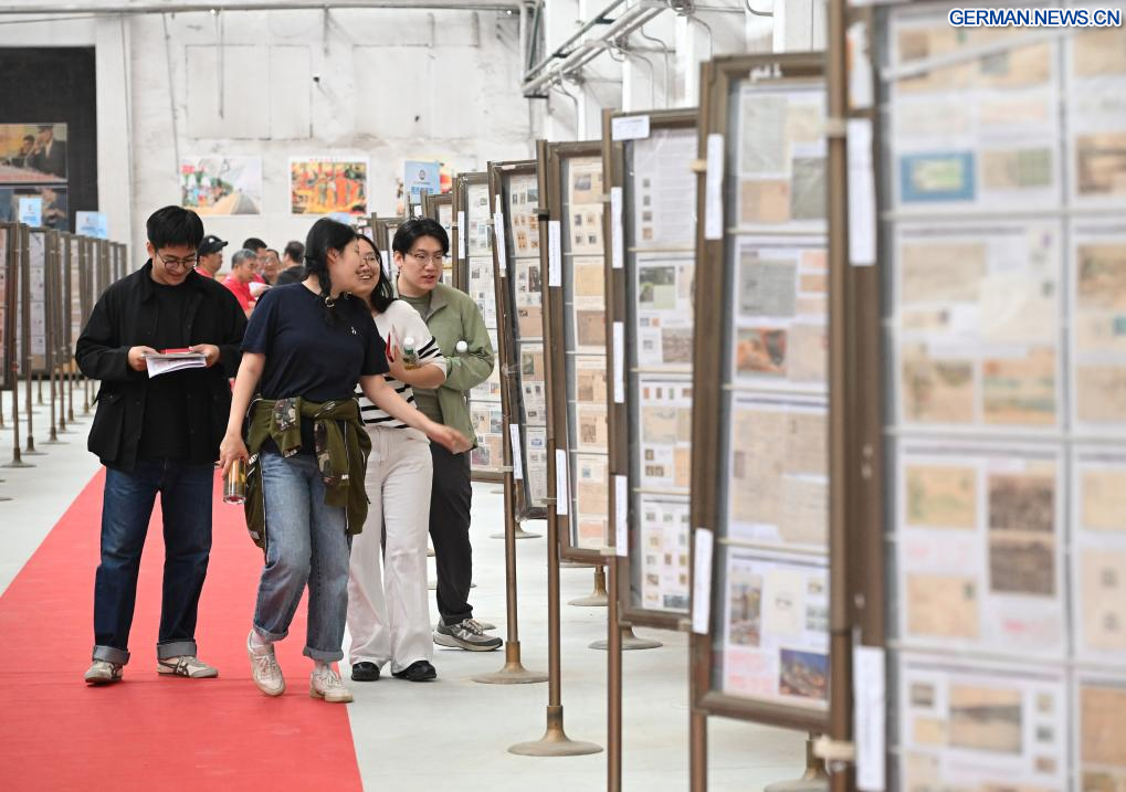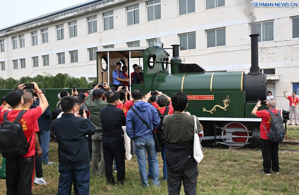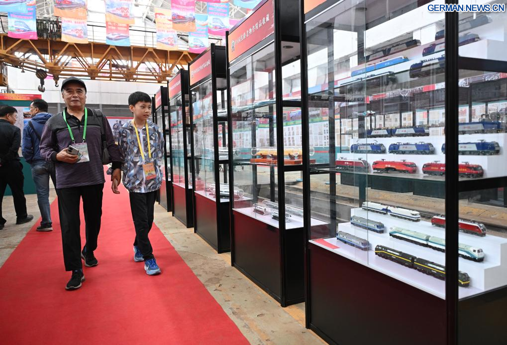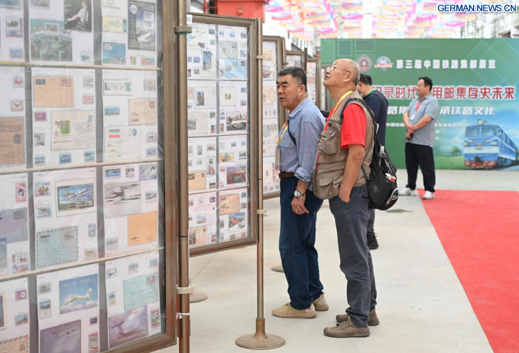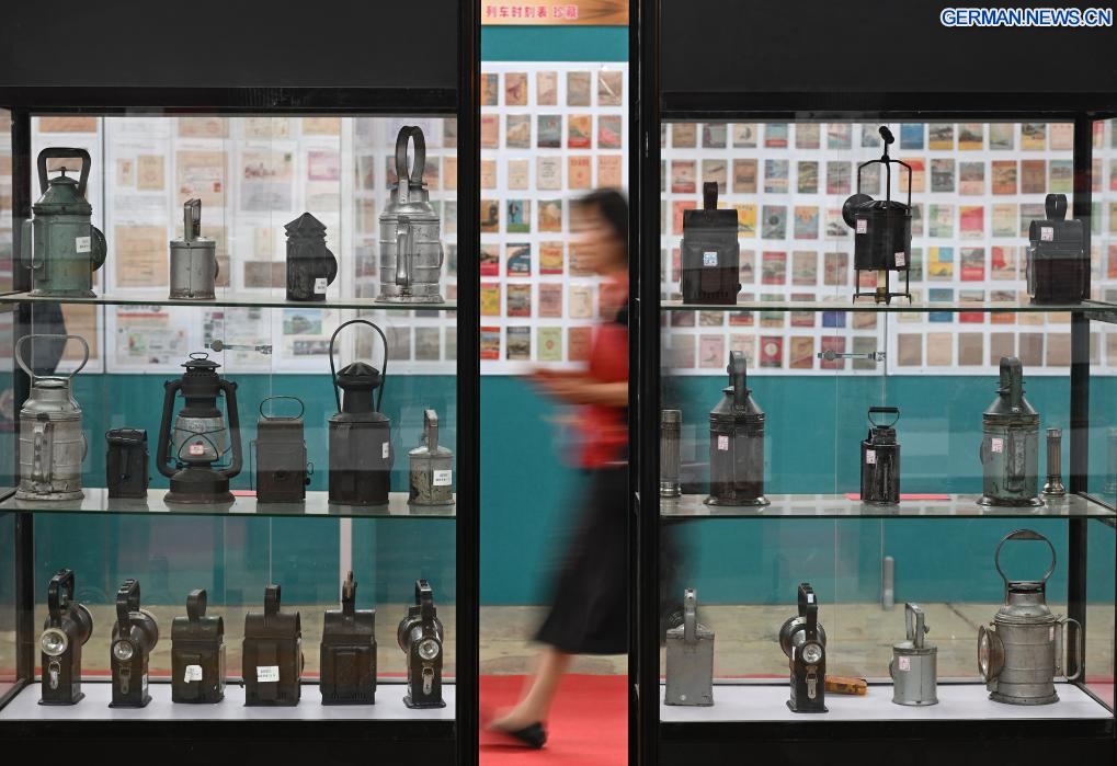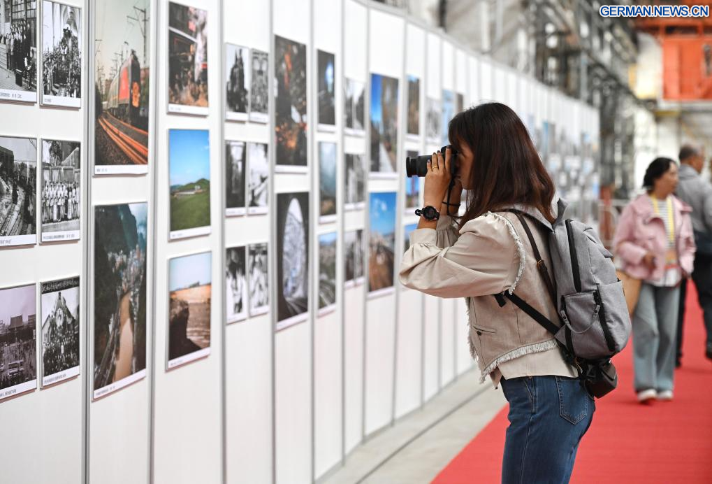 BEIJING, 27. September 2025 (Xinhuanet) -- Eine Besucherin fotografiert ein Bild bei einer Eisenbahn-Fotoausstellung während einer Messe zum Thema chinesische Eisenbahnkultur in Chinas Hauptstadt Beijing, 27. September 2025. Eine Ausstellung mit einer Sammlung von Exponaten zur chinesischen Eisenbahnkultur wurde hier am Samstag eröffnet und zeigt die Entwicklung und Errungenschaften der chinesischen Eisenbahn. (Quelle: Xinhua/Li He)