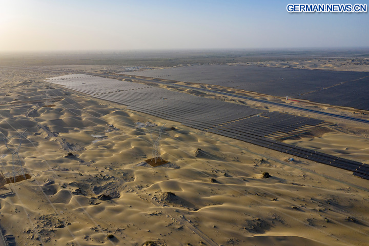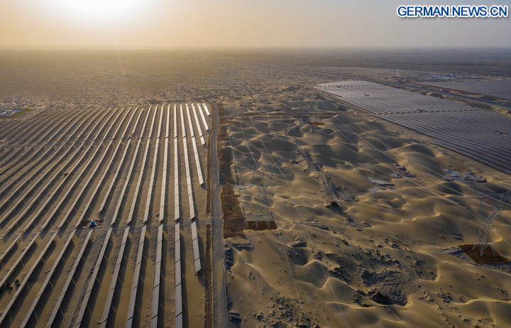 Xinjiangs weitläufige Wüsten und karge Landschaften, die einst als wirtschaftliches Hindernis galten, haben sich zu einer Goldmine im Bereich der erneuerbaren Energien entwickelt. (Foto von Zhang Lingjun/Xinhua)