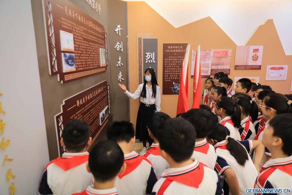 BEIJING, 30. September 2025 (Xinhuanet) -- Schüler informieren sich über die Heldentaten von Märtyrern auf einem Märtyrerfriedhof im Kreis Wenxian in der zentralchinesischen Provinz Henan, 30. September 2025. China beging am Dienstag seinen 12. Märtyrertag mit landesweiten Gedenkveranstaltungen zu Ehren gefallener Nationalhelden. (Foto von Huang Fuxing/Xinhua)