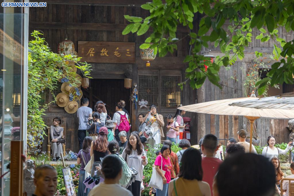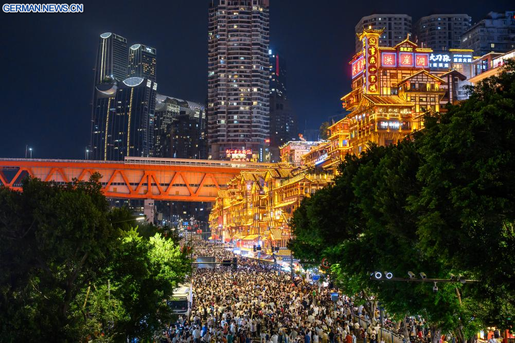 CHONGQING, 4. Oktober 2025 (Xinhuanet) -- Touristen besuchen das Landschaftsgebiet Hongyadong in der südwestchinesischen regierungsunmittelbaren Stadt Chongqing, 3. Oktober 2025. (Foto von Guo Xu/Xinhua)