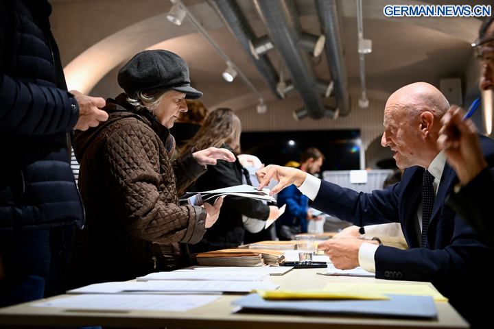 PRAG, 4. Oktober 2025 (Xinhua) -- Bürger registrieren sich in einem Wahllokal in Prag in der Tschechischen Republik, um ihre Stimme abzugeben, 3. Oktober 2025.