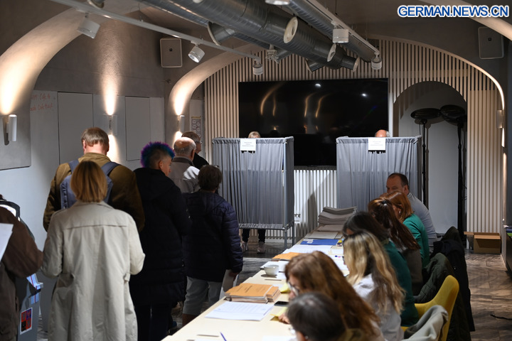 PRAG, 4. Oktober 2025 (Xinhua) -- Bürger geben ihre Stimme in einem Wahllokal in Prag in der Tschechischen Republik ab, 3. Oktober 2025.