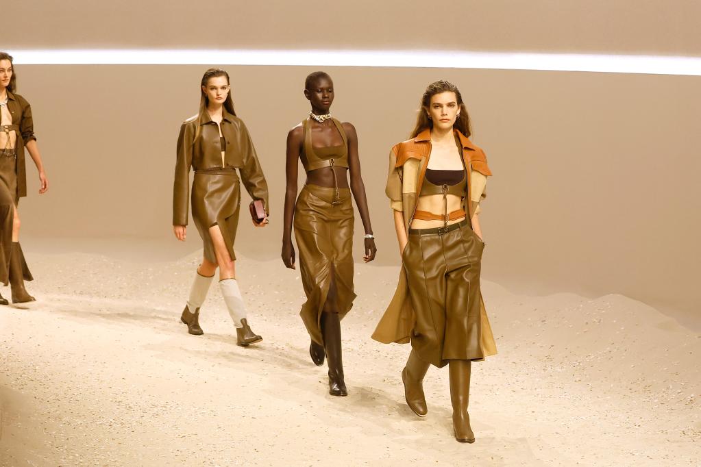 PARIS, 5. Oktober 2025 (Xinhuanet) -- Models präsentieren Kreationen der Prêt-à-Porter-Kollektionen Frühjahr/Sommer 2026 von Hermes während der Pariser Modewoche in Paris, Frankreich, 4. Oktober 2025. (MeetEurope/Handout via Xinhua)