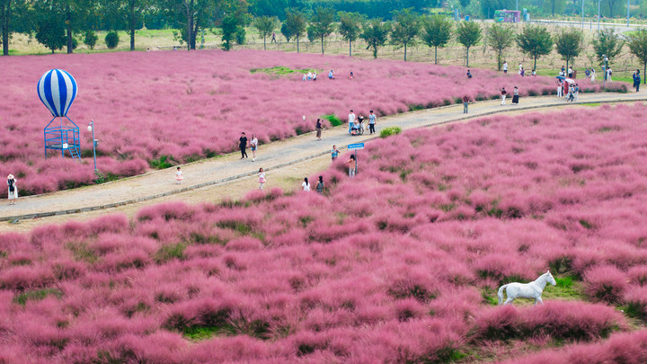 BEIJING, 8. Oktober 2025 (Xinhua) -- Die Drohnenaufnahme zeigt Touristen beim Bootfahren im Lixiahe National Wetland Park in der Stadt Xinghua in der Provinz Jiangsu in Ostchina, 7. Oktober 2025. Auch zum Ende der Ferienzeit zum Nationalfeiertag und zum Mondfest ist die Begeisterung der Touristen im ganzen Land ungebrochen. (Foto von Zhou Shegen/Xinhua)