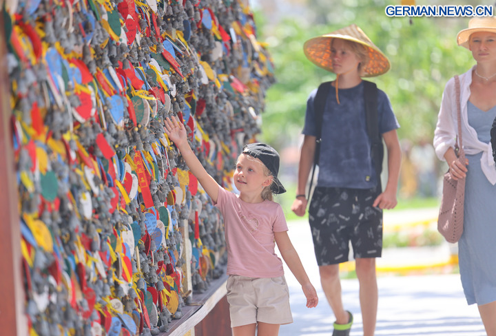 BEIJING, 8. Oktober 2025 (Xinhua) -- Touristen besuchen die Nanshan Cultural Tourism Zone in Sanya in der Provinz Hainan in Südchina, 7. Oktober 2025. Auch zum Ende der Ferienzeit zum Nationalfeiertag und zum Mondfest ist die Begeisterung der Touristen im ganzen Land ungebrochen. (Foto von Chen Wenwu/Xinhua)