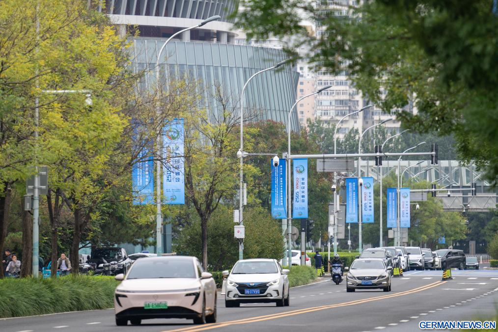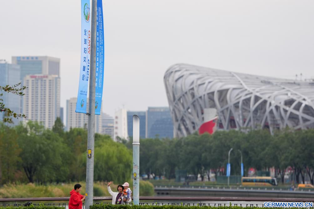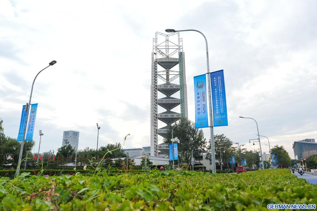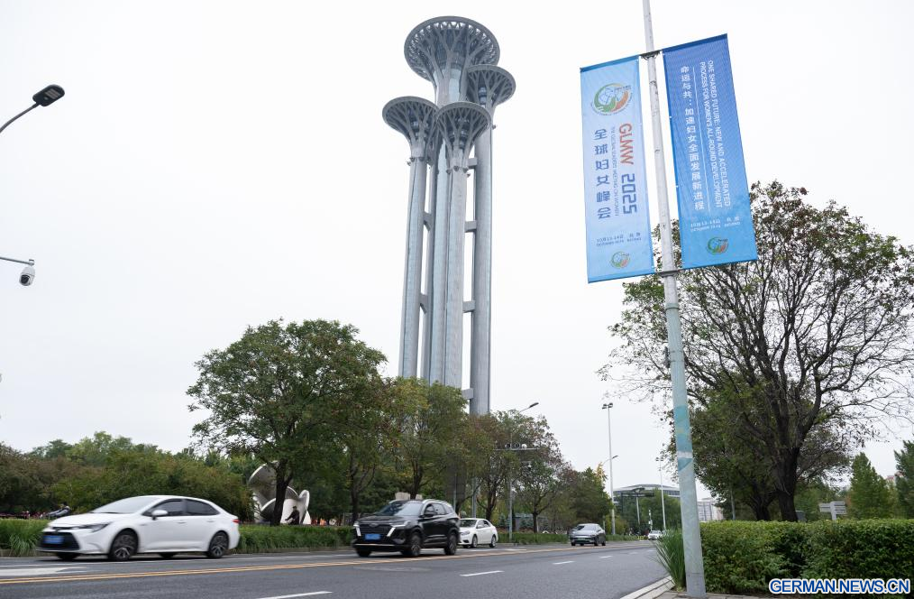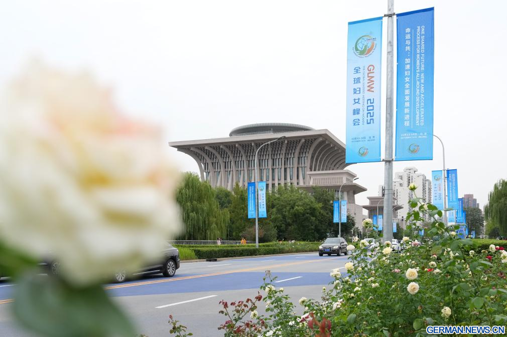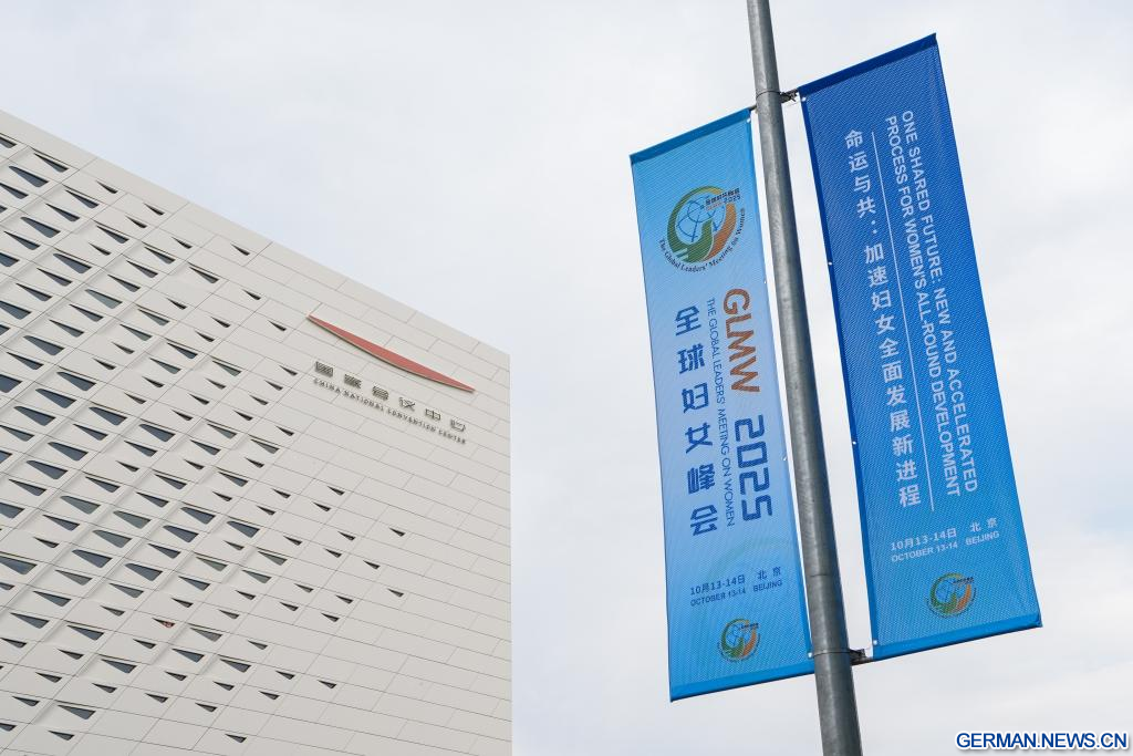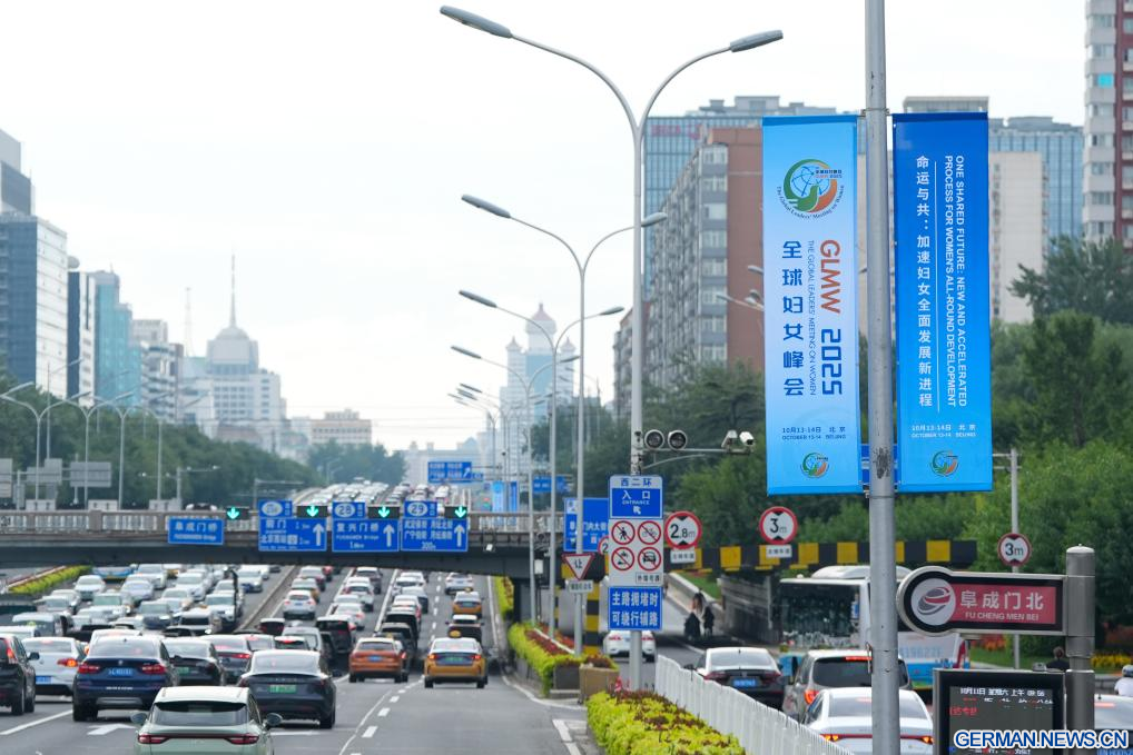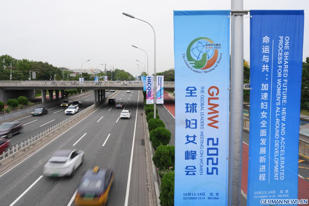 BEIJING, 12. Oktober 2025 (Xinhuanet) -- Straßenbanner für das Global Leaders' Meeting on Women sind in der chinesischen Hauptstadt Beijing zu sehen, 12. Oktober 2025. Das Global Leaders' Meeting on Women findet vom 13. bis 14. Oktober in Beijing statt. (Quelle: Xinhua/Xu Bingjie)