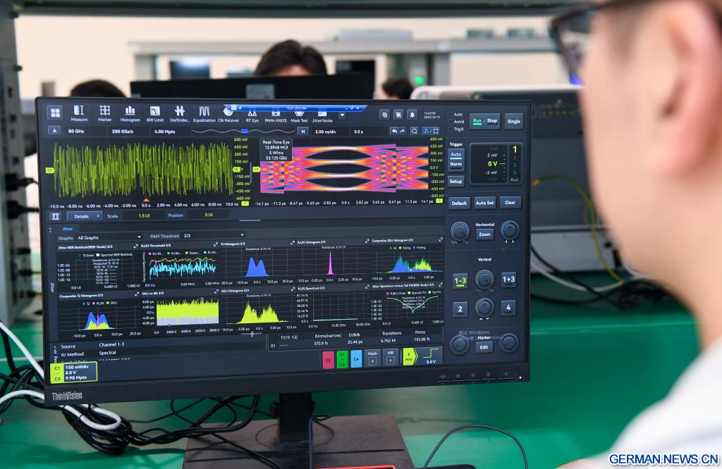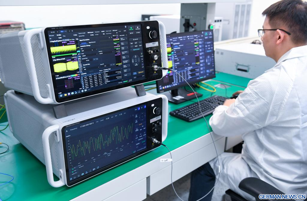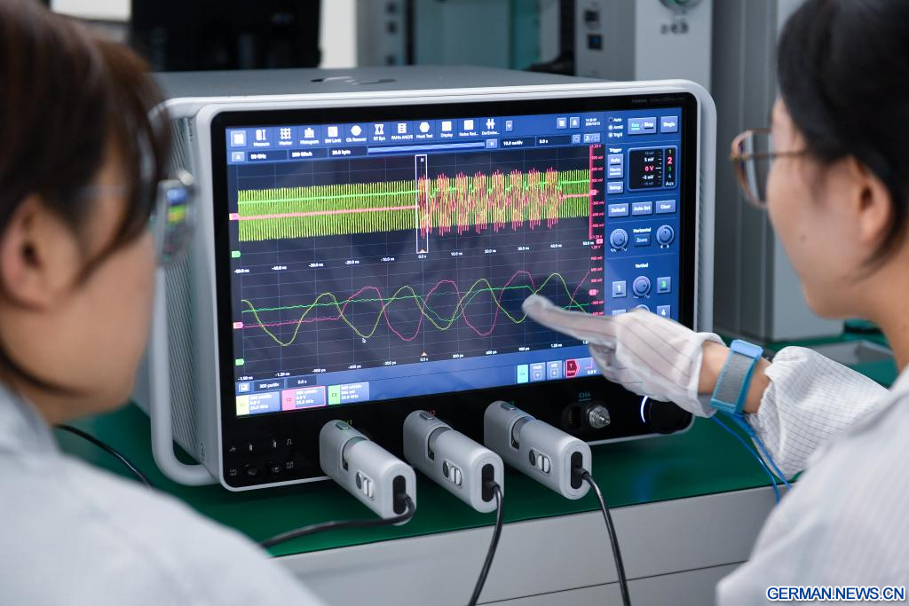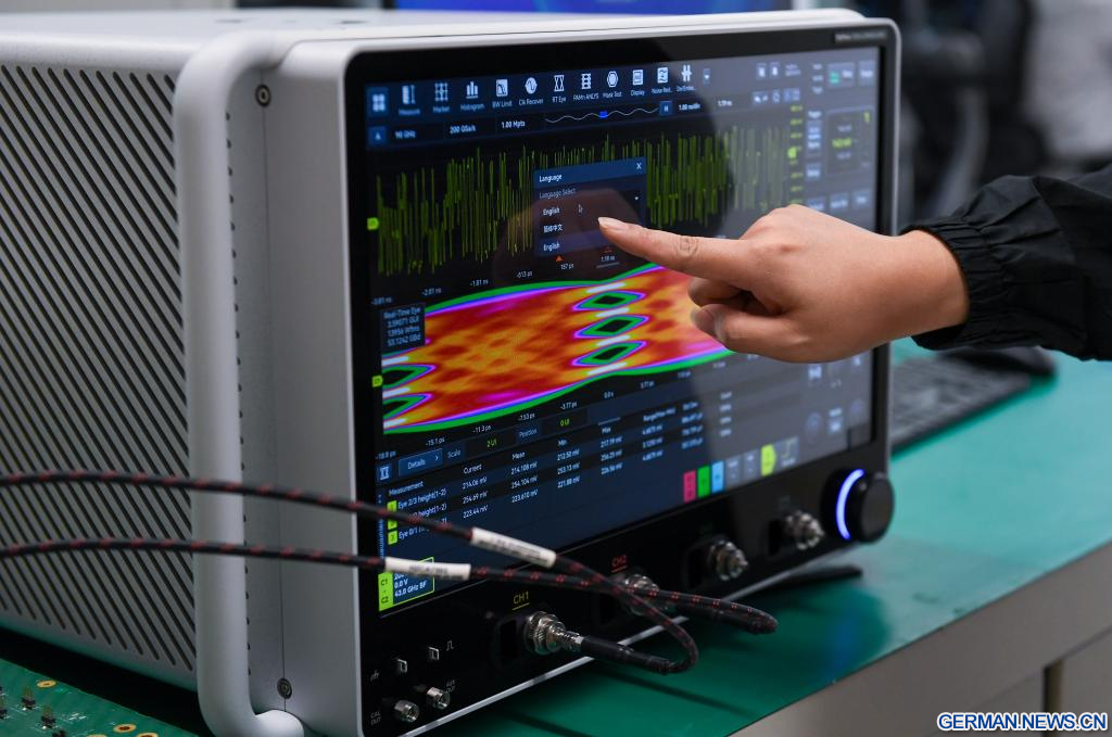 Ein Oszilloskop ist eine wichtige Upstream-Ausrüstung in Wissenschaft und Industrie, das in der Produktforschung und -entwicklung, bei Tests und in der Fertigung weit verbreitet ist. Es wandelt unsichtbare elektrische Signale in sichtbare Wellenformen um und dient Ingenieuren und Wissenschaftlern als „Augen“ und „Referenz“. (Quelle: Xinhua/Mao Siqian)