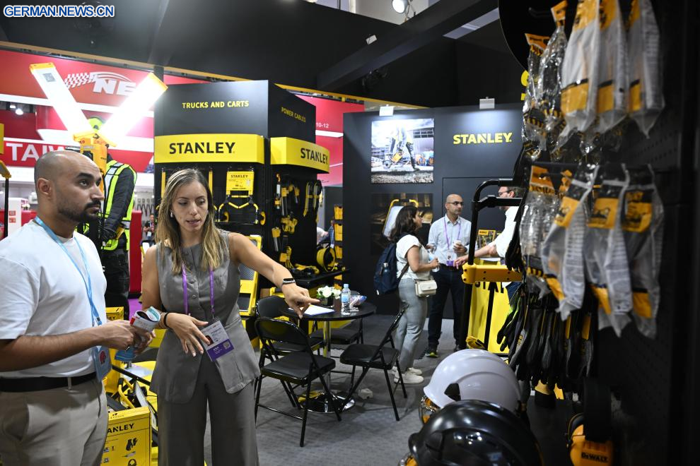GUANGZHOU, 15. Oktober 2025 (Xinhuanet) -- Das am 15. Oktober 2025 aufgenommene Foto zeigt eine Szene während der 138. Ausgabe der Chinesischen Import- und Exportmesse in Guangzhou in der südchinesischen Provinz Guangdong. Die 138. Ausgabe der Chinesischen Import- und Exportmesse, auch bekannt als Kanton-Messe, begann am Mittwoch in Guangzhou. Die Zahl der Messestände erreichte 74.600 und die Zahl der Aussteller überstieg 32.000 – beide Zahlen sind Rekordwerte in der Geschichte dieser berühmten Veranstaltung. (Quelle: Xinhua/Deng Hua)