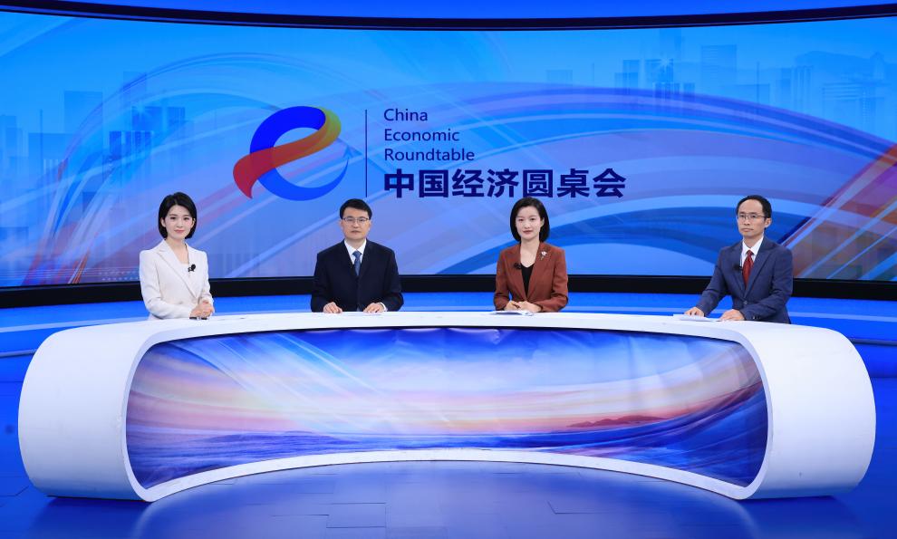 Gäste nehmen an der neuesten Folge des China Economic Roundtable, einer von der Nachrichtenagentur Xinhua veranstalteten medienübergreifenden Talkshow, teil. (Quelle: Xinhua/Yin Gang)