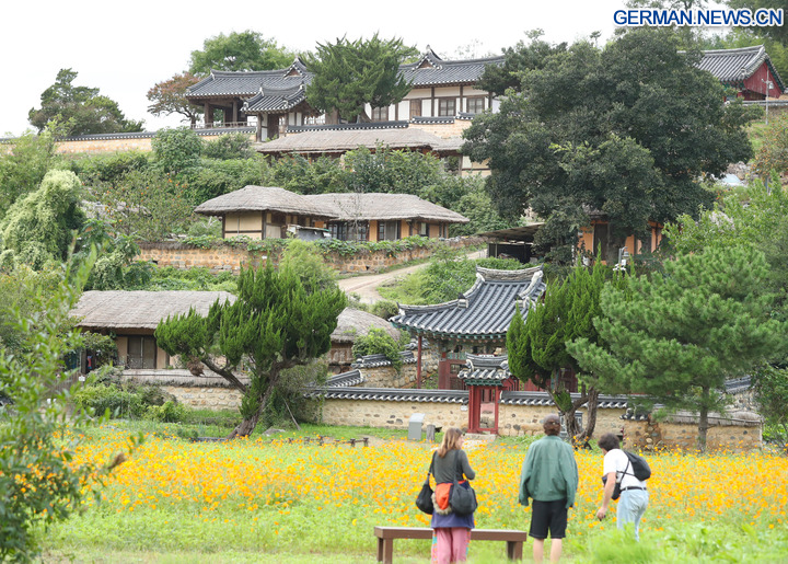 GYEONGJU, 30. Oktober 2025 (Xinhua) -- Touristen besuchen das Dorf Yangdong in Gyeongju in Südkorea, 17. Oktober 2025. Gyeongju, eine Stadt im Südosten Südkoreas, wird oft als „Freilichtmuseum” bezeichnet, da sie die Stadt mit den meisten UNESCO-Welterbestätten des Landes ist. (Xinhua/Yao Qilin)