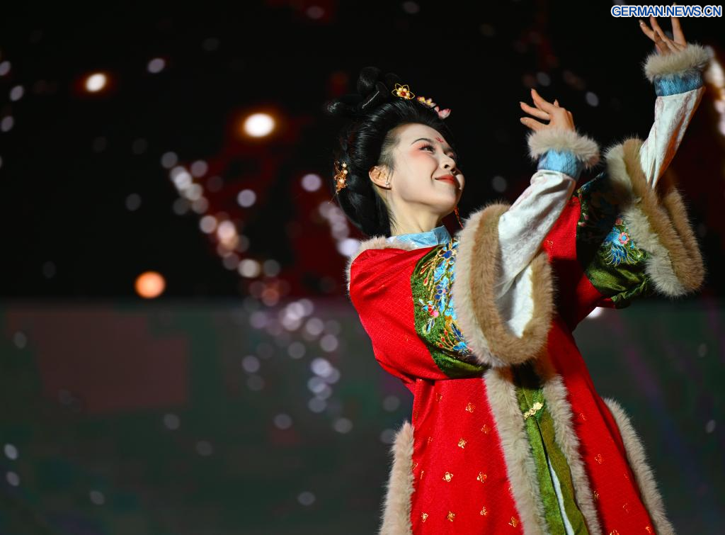 ZHENGZHOU, Südkorea, 30. Oktober (Xinhua) -- Models präsentieren Kreationen bei einer Modenschau in der antiken Stadt Luoyi in Luoyang in der zentralchinesischen Provinz Henan, 29. Oktober 2025. (Quelle: Xinhua/Hao Yuan)