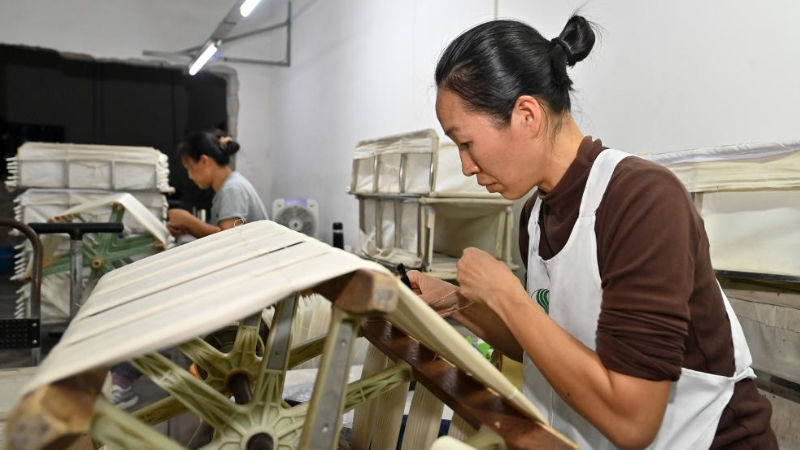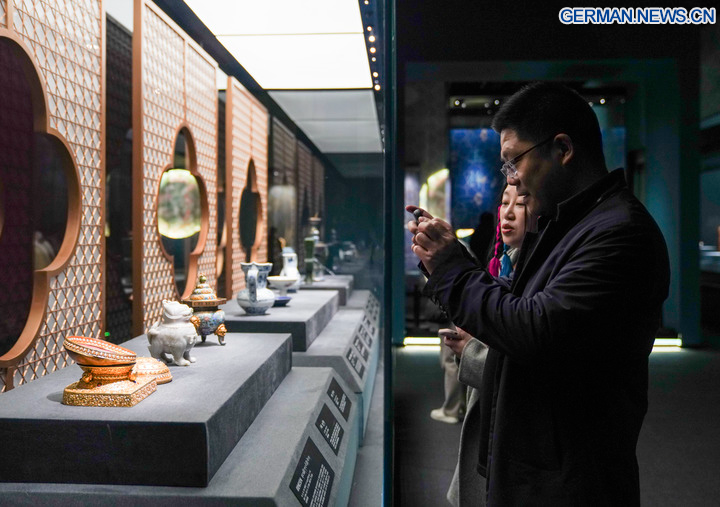 LHASA, 2. November 2025 (Xinhua) -- Eine Touristin besucht eine Ausstellung im Xizang-Museum in Lhasa im Südwesten des autonomen Gebiets Xizang in China, 30. Oktober 2025. Anlässlich des 60. Jahrestags der Gründung des autonomen Gebiets findet in Lhasa eine gemeinsame Ausstellung mit Kulturgütern aus dem Palastmuseum, dem Xizang-Museum, dem Potala-Palast und dem Norbulingka statt. Die Ausstellung dauert bis zum 1. Dezember. (Xinhua/Zhou Jiayi)