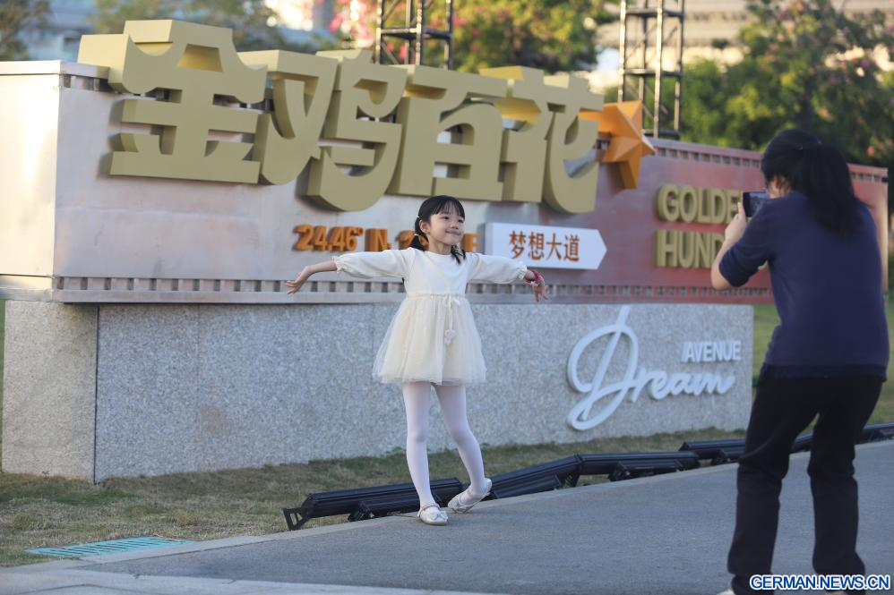 XIAMEN, 16. November 2025 (Xinhuanet) -- Touristen besuchen die Dream Avenue von Golden Rooster and Hundred Flowers in Xiamen in der südostchinesischen Provinz Fujian, 16. November 2025. Die Allee wurde am Sonntag für die Öffentlichkeit geöffnet. (Foto von Zeng Demeng/Xinhua)