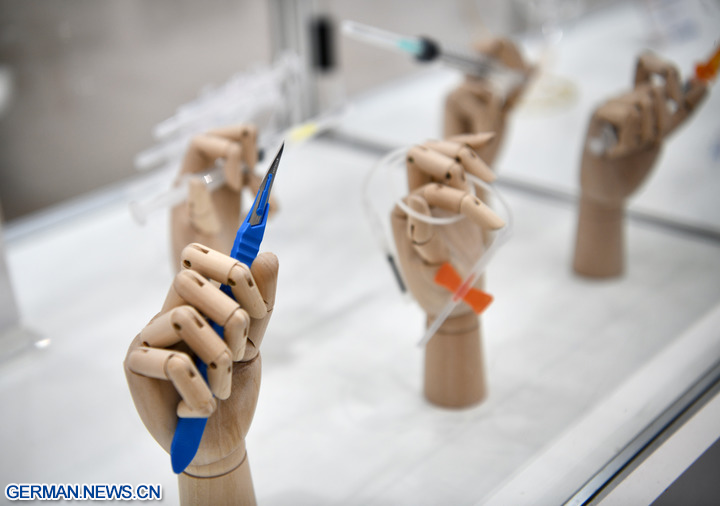DÜSSELDORF, 20. November 2025 (Xinhua) -- Das Foto zeigt medizinische Geräte auf der Medica 2025 in Düsseldorf, 17. November 2025. In Düsseldorf begann am Montag eine bedeutende Messe für Medizinprodukte, an der mehr als 1300 chinesische Unternehmen teilnehmen.