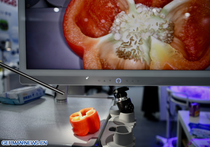 DÜSSELDORF, 20. November 2025 (Xinhua) -- Das Foto zeigt ein medizinisch-optisches Gerät auf der Medica 2025 in Düsseldorf, 17. November 2025. In Düsseldorf begann am Montag eine bedeutende Messe für Medizinprodukte, an der mehr als 1300 chinesische Unternehmen teilnehmen.