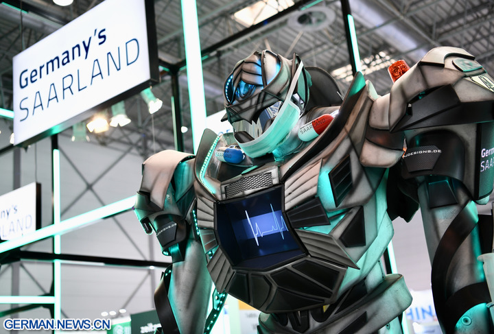 DÜSSELDORF, 20. November 2025 (Xinhua) -- Das Foto zeigt einen Deko-Roboter auf der Medica 2025 in Düsseldorf, 17. November 2025. In Düsseldorf begann am Montag eine bedeutende Messe für Medizinprodukte, an der mehr als 1300 chinesische Unternehmen teilnehmen.