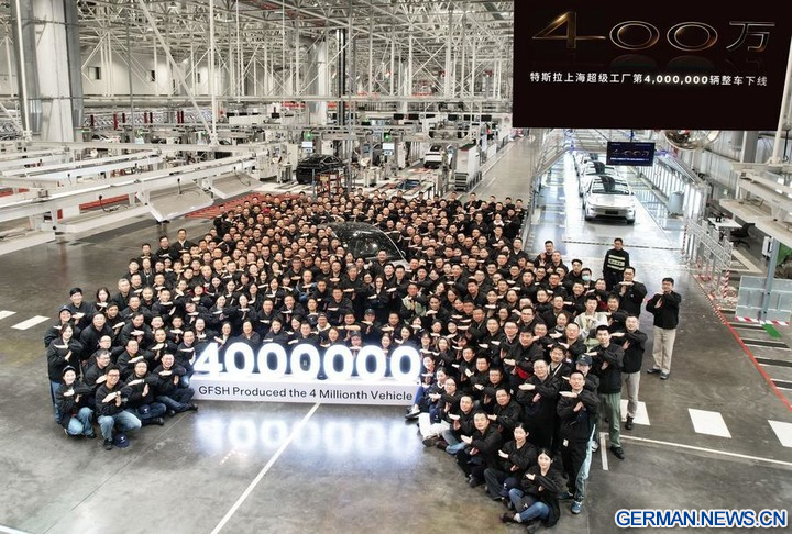 SHANGHAI, 9. Dezember (Xinhua) -- Teslas Gigafactory in Shanghai hat laut Unternehmensangaben am Montag einen beeindruckenden Meilenstein erreicht und das viermillionste Fahrzeug produziert.