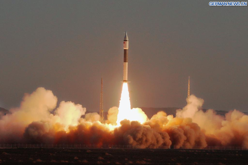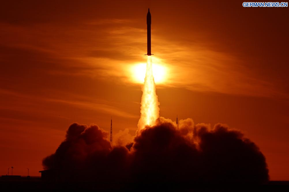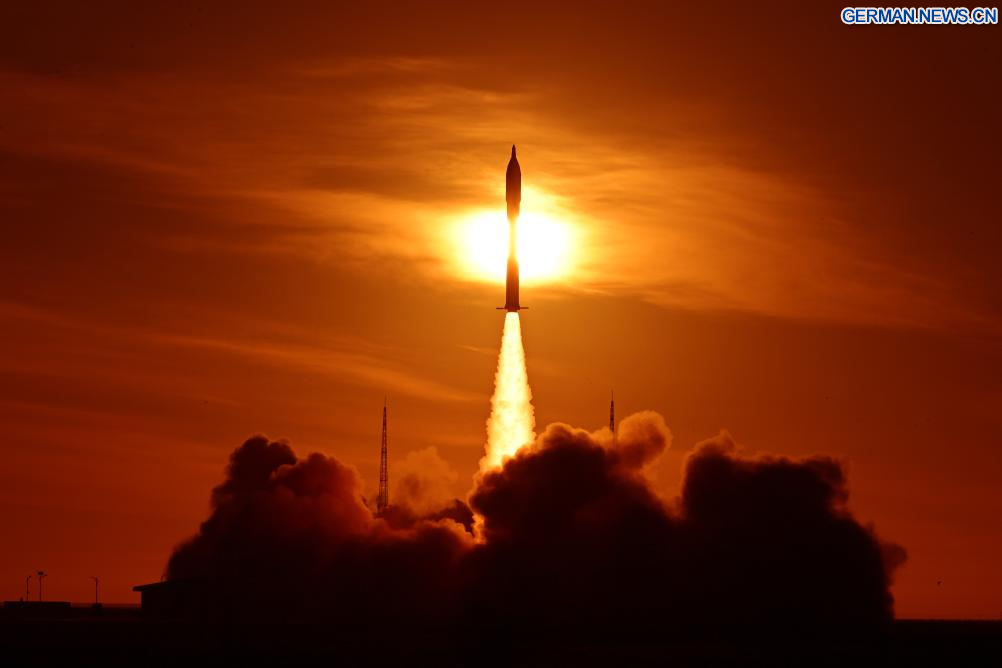 JIUQUAN, 13. Dezember 2025 (Xinhuanet) -- Eine Trägerrakete vom Typ „Kuaizhou-11 Y8“ mit einem Weltraum-Experimentraumschiff an Bord startet vom Weltraumbahnhof Jiuquan Satellite Launch Center im Nordwesten Chinas, 13. Dezember 2025. Die Rakete startete um 9:08 Uhr Ortszeit von Beijing. Sie brachte erfolgreich die Nutzlasten in die geplante Umlaufbahn. (Foto von Wang Jiangbo/Xinhua)