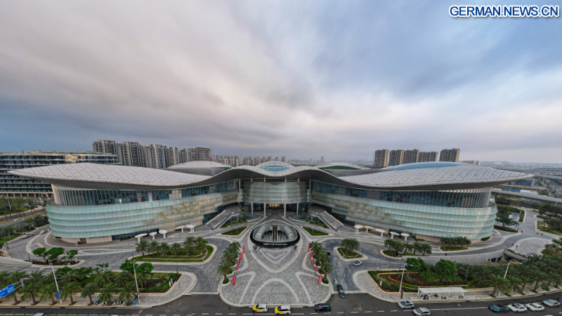 HAIKOU, 19. Dezember 2025 (Xinhua) -- Die Luftaufnahme einer Drohne zeigt den Haikou International Duty Free Shopping Complex in Haikou in der Provinz Hainan in Südchina, 18. Dezember 2025. China hat am Donnerstag inselweite Sonderzollmaßnahmen im Freihandelshafen Hainan (FTP) eingeführt. (Xinhua/Yang Guanyu)