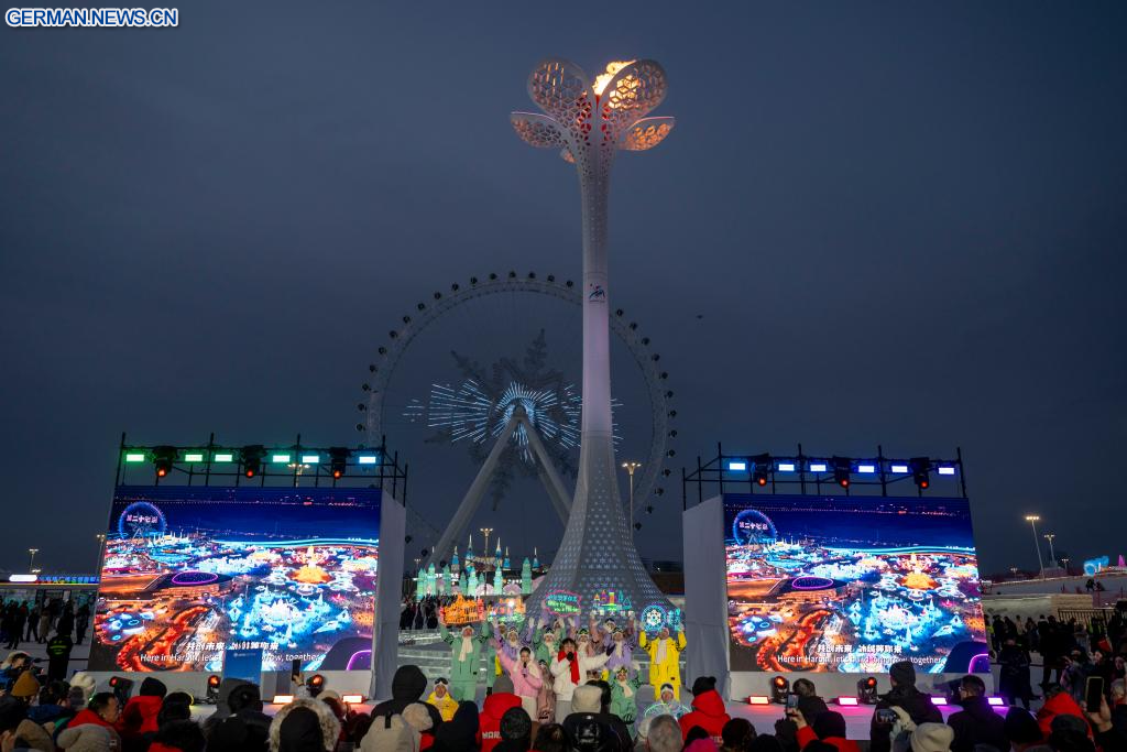 HARBIN, 6. Januar 2026 (Xinhuanet) -- Künstler treten bei der Eröffnungszeremonie des „Global Mayors Dialogue in Harbin“ in Harbin in der nordostchinesischen Provinz Heilongjiang auf, 6. Januar 2026. Die Eröffnungszeremonie des Dialogs fand am Dienstag hier in der Eis- und Schneewelt von Harbin statt. (Quelle: Xinhua/Zhang Tao)