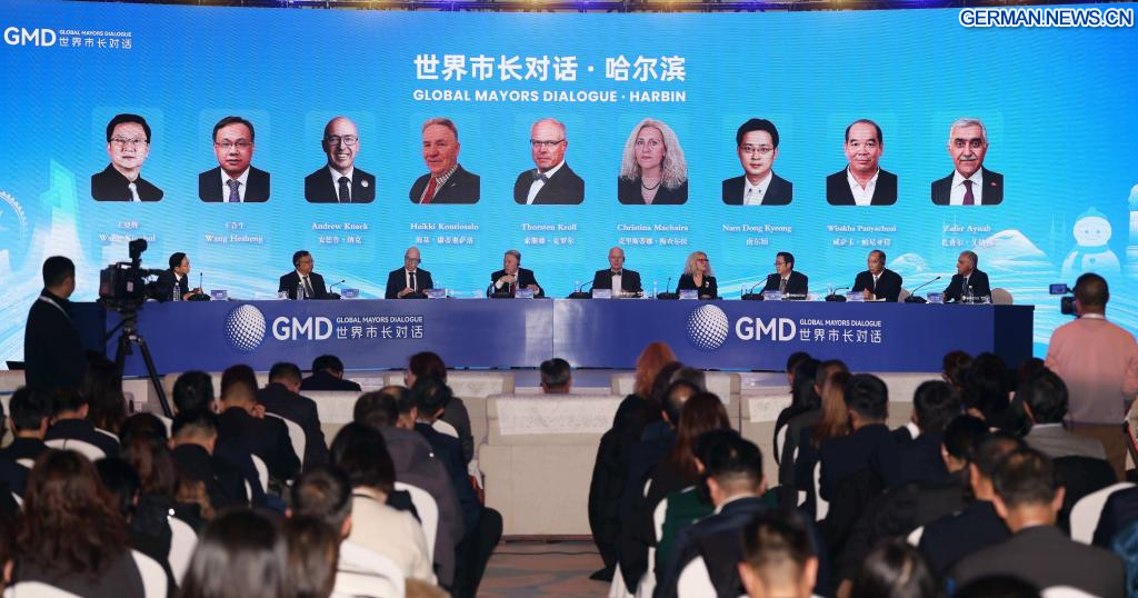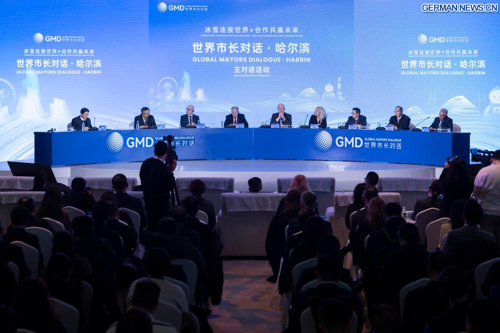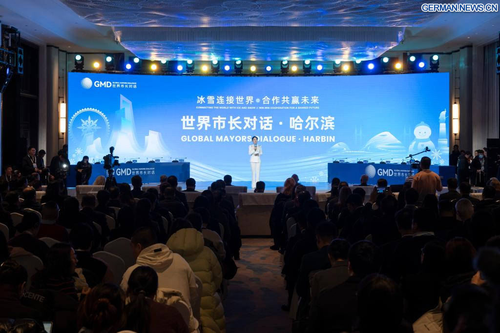 HARBIN, 7. Januar 2026 (Xinhuanet) -- Dieses Foto vom 7. Januar 2026 zeigt einen Anblick auf die Hauptdiskussionsrunde des „Global Mayors Dialogue in Harbin“ in Harbin in der nordostchinesischen Provinz Heilongjiang. (Quelle: Xinhua/Zhang Tao)