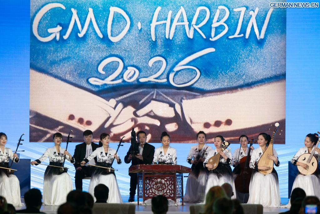 HARBIN, 7. Januar 2026 (Xinhuanet) -- Künstler treten bei der Hauptdiskussionsrunde des „Global Mayors Dialogue in Harbin“ in Harbin in der nordostchinesischen Provinz Heilongjiang auf, 7. Januar 2026. (Quelle: Xinhua/Zhang Tao)