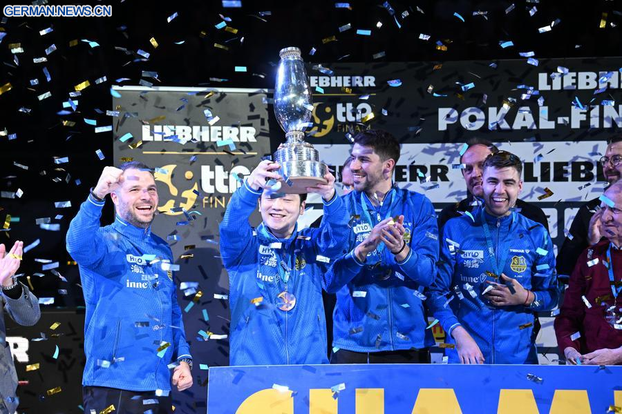 BERLIN, 7. Januar (Xinhua) -- Der chinesische Tischtennisstar Fan Zhendong holte seinen ersten Auslands-Klubtitel, nachdem er den 1. FC Saarbrücken Tischtennis am Sonntag im Finale um den deutschen Tischtennis-Pokal in Neu-Ulm zu einem 3:1-Sieg über den TTC RhönSprudel Fulda-Maberzell geführt hatte.