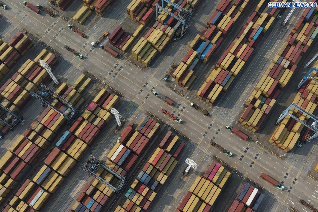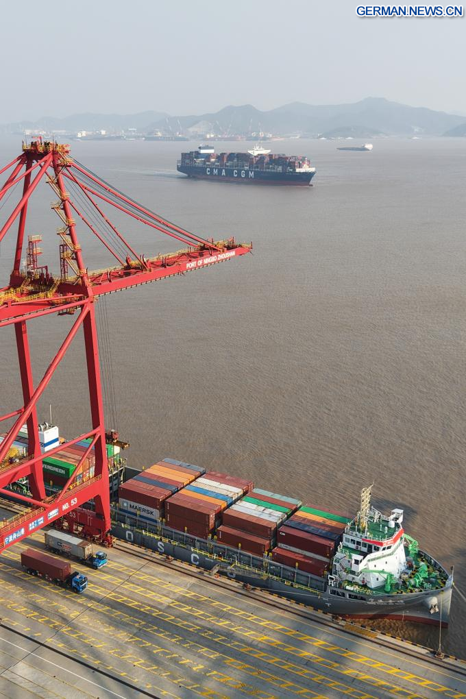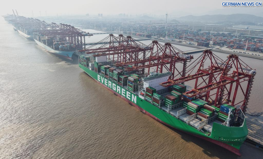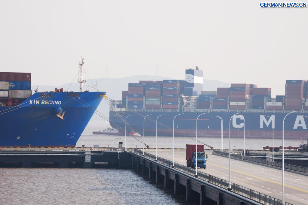 Als wichtiger Knotenpunkt der maritimen Seidenstraße des 21. Jahrhunderts hat der Hafen Ningbo-Zhoushan seine globale Reichweite kontinuierlich ausgebaut. Bis Ende 2025 bot der Hafen mehr als 300 Container-Schifffahrtsrouten an, die über 700 Häfen in mehr als 200 Ländern und Regionen verbanden. (Quelle: Xinhua/Huang Zongzhi)