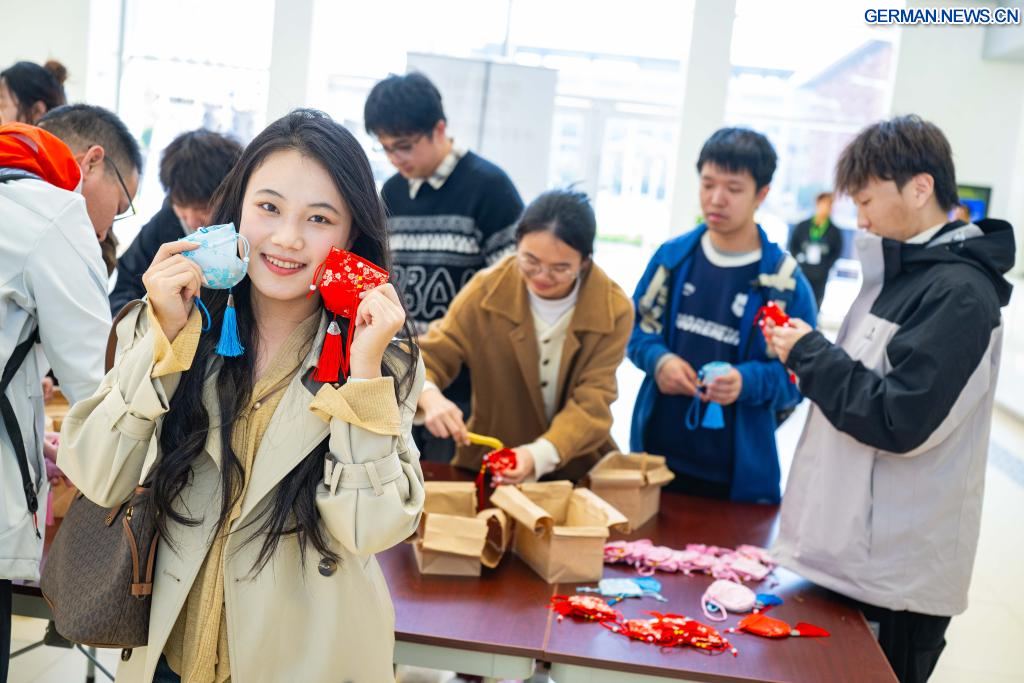 MACAO, 11. Januar 2026 (Xinhuanet) -- Menschen basteln Duftsäckchen an der Universität von Macao in Macao in Südchina, 11. Januar 2026. (Quelle: Xinhua/Cheong Kam Ka)