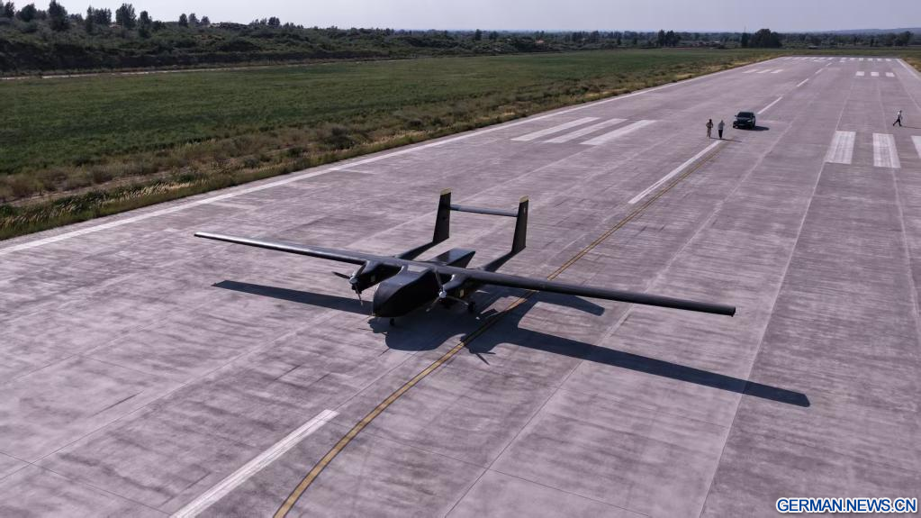 Es handelt sich um Chinas erstes unbemanntes Flugzeug, das laut Angaben seines Entwicklers in der Lage ist, sich an komplexes Gelände in großer Höhe anzupassen, auf extrem kurzen Strecken zu starten und zu landen sowie schnell zwischen Frachttransport- und Luftabwurfmodus wechseln kann. (Quelle: Xinhua)