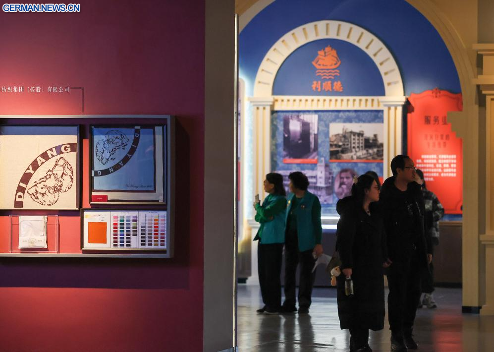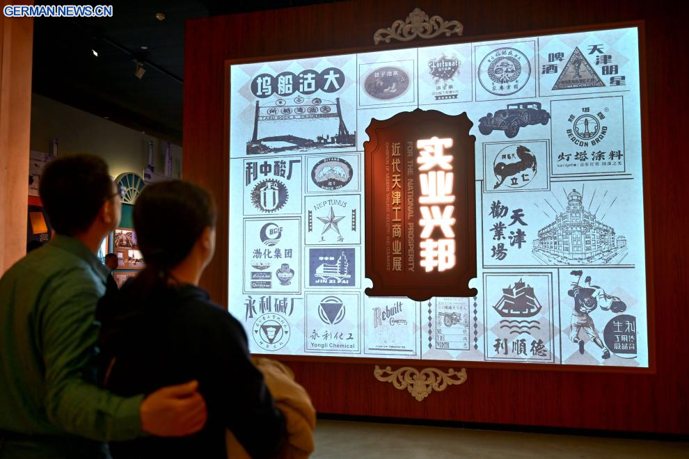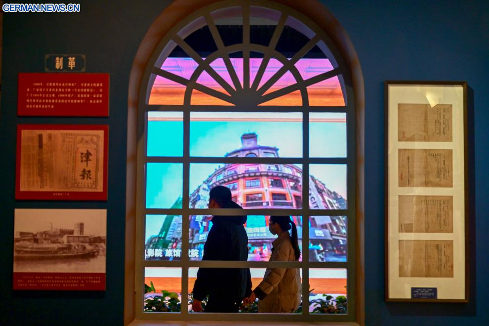 TIANJIN, 13. Januar 2026 (Xinhuanet) -- Menschen besuchen eine Ausstellung über die Industrie und den Handel vom modernen Tianjin im Tianjin-Museum in Tianjin in Nordchina, 13. Januar 2026. Die Ausstellung umfasst über 320 historische Fotografien sowie mehr als 120 Stücke (Sets) physischer Exponate und ist drei Monate lang kostenlos für die Öffentlichkeit zugänglich. (Quelle: Xinhua/Sun Fanyue)