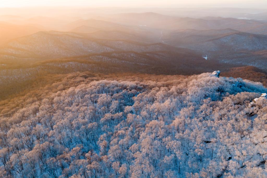 SHUANGYASHAN, 25. Januar 2026 (Xinhuanet) -- Das am 25. Januar 2026 aufgenommene Luftbild einer Drohne zeigt die Raureiflandschaft des Qixingshan-Waldparks in Shuangyashan in der nordostchinesischen Provinz Heilongjiang. (Foto von Han Yang/Xinhua)