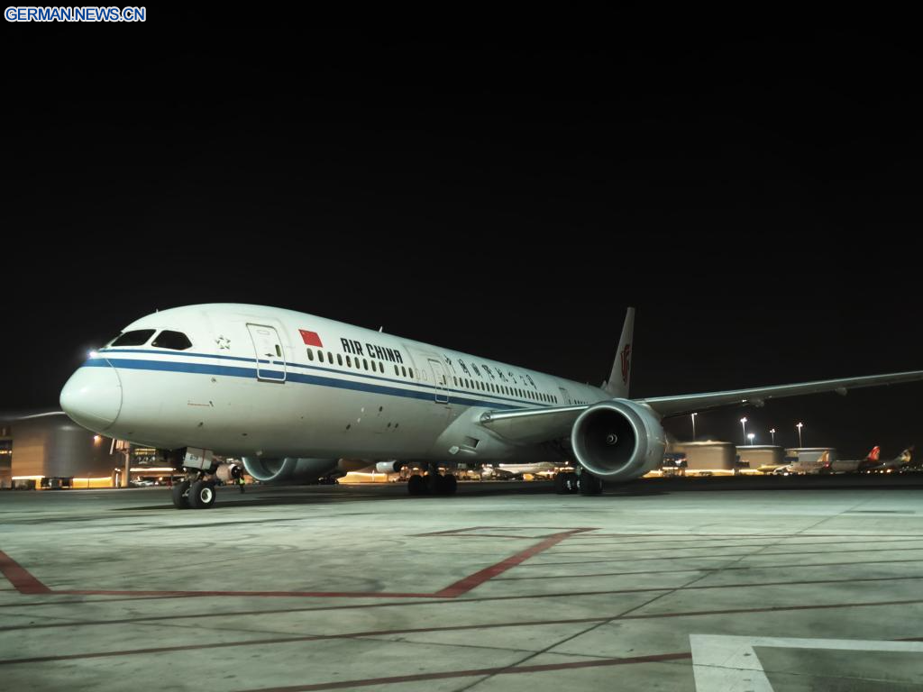 ABU DHABI, 25. Januar 2026 (Xinhuanet) -- Der Erstflug von Air China zwischen Beijing und Abu Dhabi landet auf dem Zayed International Airport in Abu Dhabi in den Vereinigten Arabischen Emiraten, 24. Januar 2026. (Quelle: Xinhua)