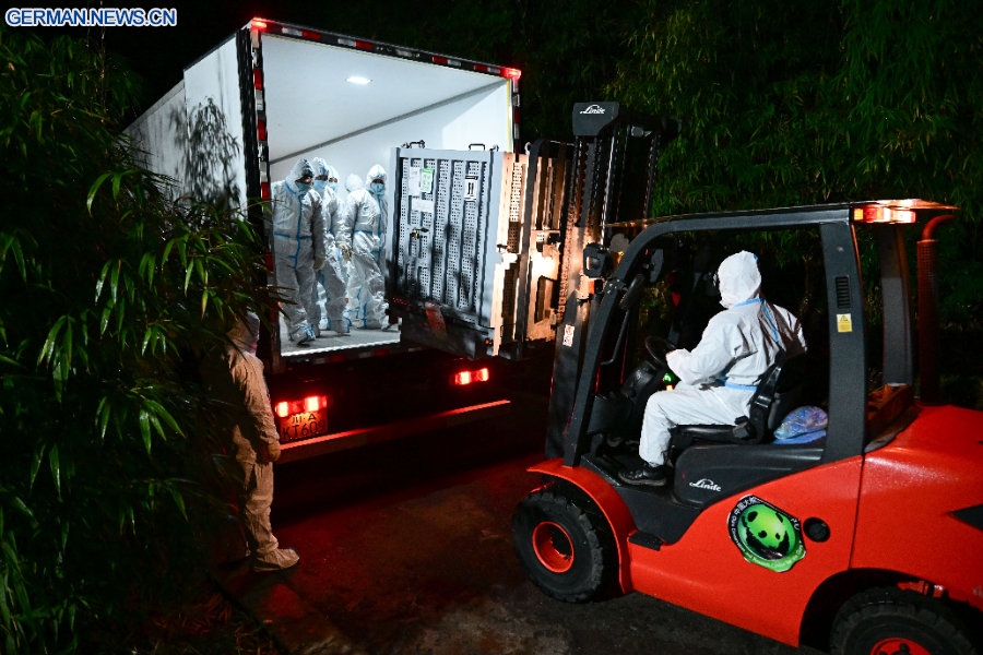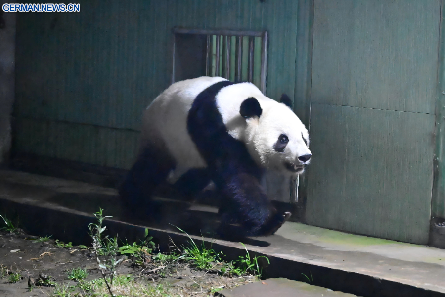 Das Paar, Xiao Xiao und Lei Lei, kam um ein Uhr morgens in Chengdu in der südwestchinesischen Provinz Sichuan an, zur Quarantäne in den Stützpunkt Ya'an des Chinesischen Zentrums für die Erhaltung und Erforschung des Riesenpandas (CCRCGP) gebracht wurde.
