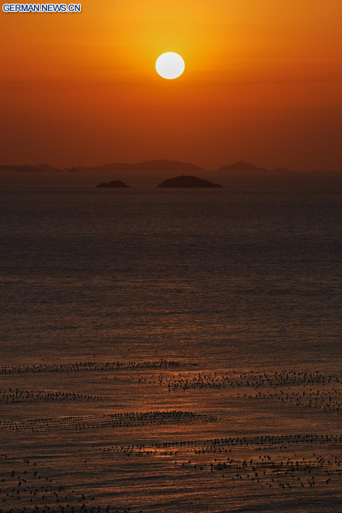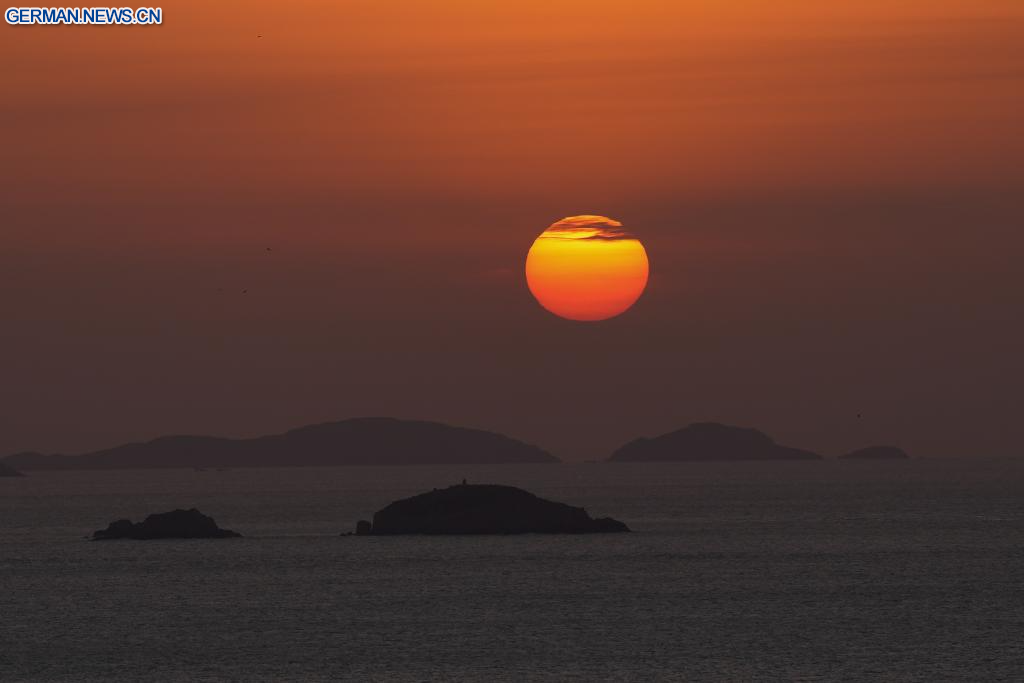 ZHOUSHAN, 28. Januar 2026 (Xinhuanet) -- Das am 28. Januar 2026 aufgenommene Foto zeigt den Sonnenuntergang auf der Insel Huaniao im Kreis Shengsi der Stadt Zhoushan in der ostchinesischen Provinz Zhejiang. (Quelle: Xinhua/Huang Zongzhi)