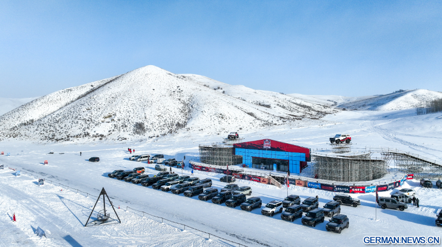 YAKESHI, 30. Januar 2026 (Xinhua) -- Die Luftaufnahme einer Drohne zeigt einen Blick auf ein Automobil-Testgelände in Yakeshi in Hulun Buir in der Autonomen Region Innere Mongolei in Nordchina, 20. Januar 2026. Yakeshi ist aufgrund seiner langen und kalten Wintersaison ein wichtiger Standort für Fahrzeugtests in kalten Regionen. Eine große Anzahl von Ingenieuren und Technikern besucht die Stadt im Winter regelmäßig zu beruflichen Zwecken, doch sie werden auch zu einer stabilen Kundengruppe für andere vor Ort angebotene Dienstleistungen.