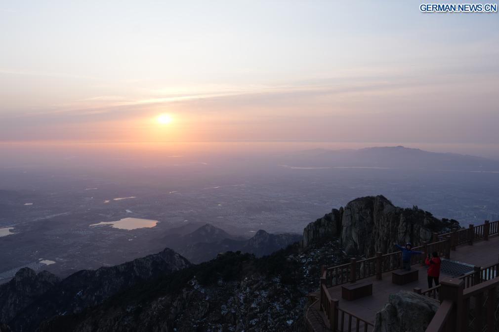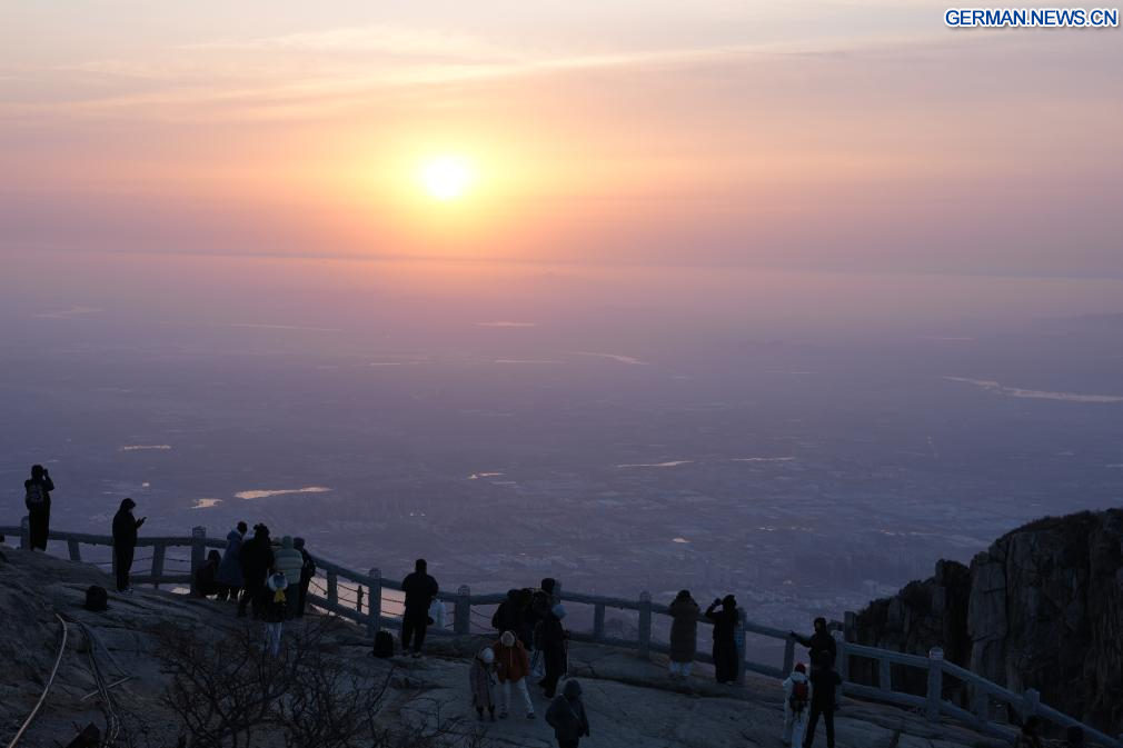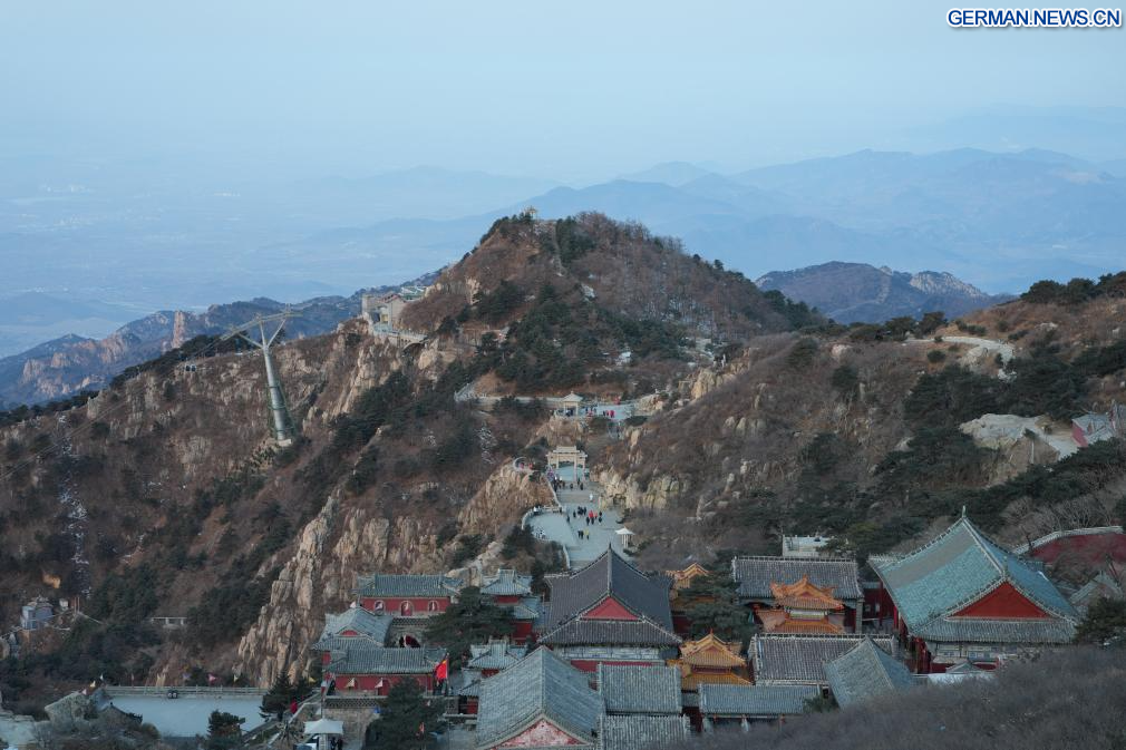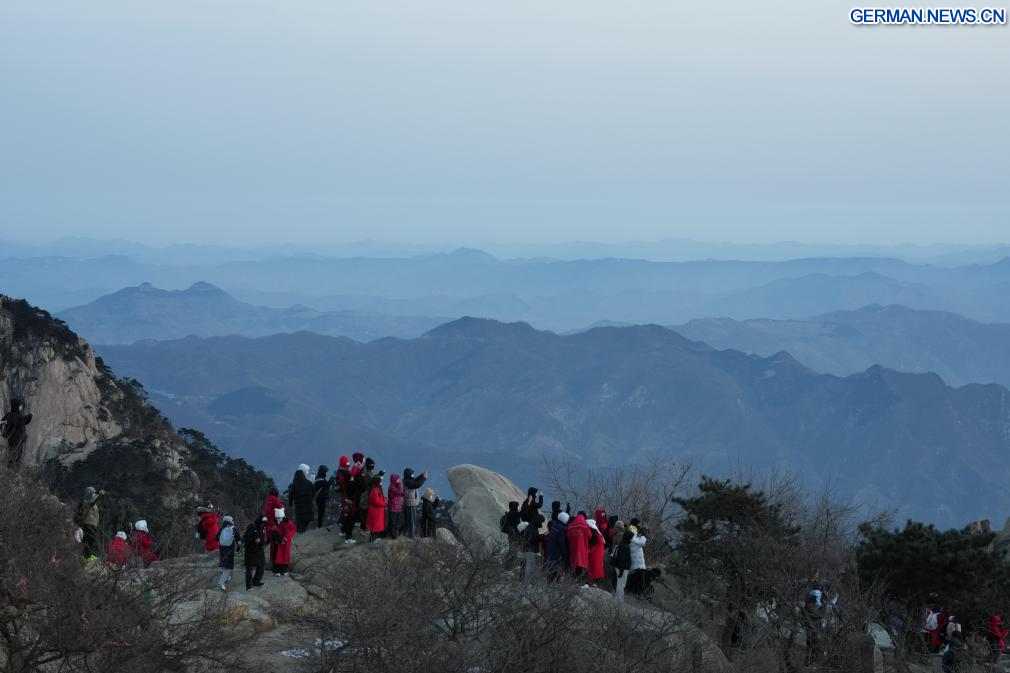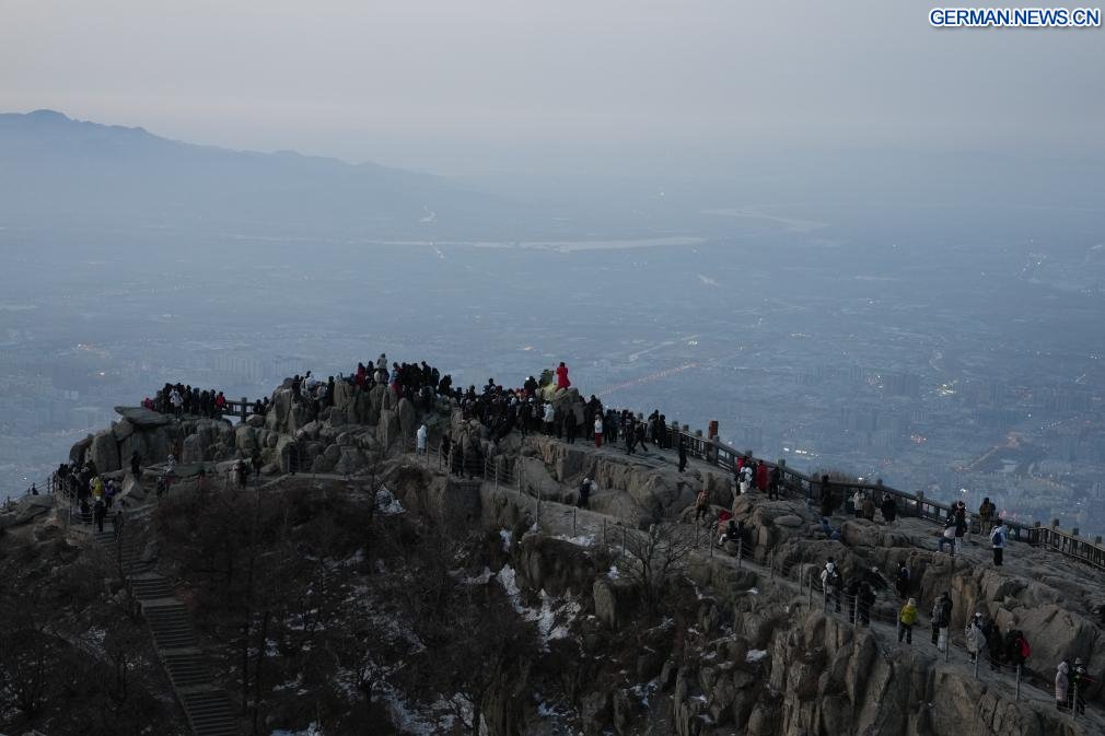 JINAN, 6. Februar 2026 (Xinhuanet) -- Touristen besuchen den Berg Tai in Tai'an in der ostchinesischen Provinz Shandong, 5. Februar 2026. (Quelle: Xinhua/Zhu Zheng)