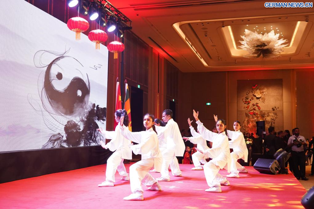 COLOMBO, 10. Februar 2026 (Xinhuanet) -- Kinder treten bei einem Empfang zum chinesischen Neujahr in Colombo, Sri Lanka, auf, 9. Februar 2026. Mitglieder der chinesischen Gemeinschaft in Sri Lanka versammelten sich am Montagabend zusammen mit lokalen Gästen, um bei einem von der chinesischen Botschaft in Sri Lanka abgehaltenen Empfang die Atmosphäre des chinesischen Neujahrs zu genießen. (Quelle: Xinhua/Wu Ziyu)
