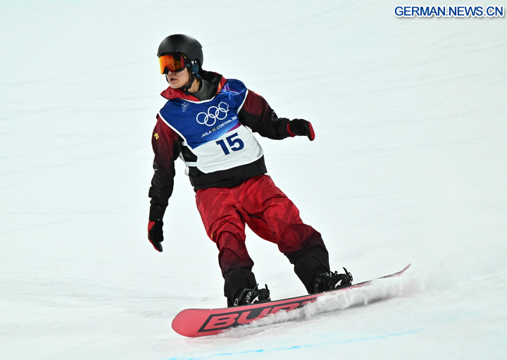 Der chinesische Snowboarder Wang Ziyang belegte am Mittwoch bei den Olympischen Winterspielen in Mailand-Cortina mit einer Punktzahl von 80,50 im zweiten Durchgang den 10. Platz in der Qualifikation der Männer in der Halfpipe und sicherte sich damit einen Platz im Finale. (Xinhua/Zhang Hongxiang)