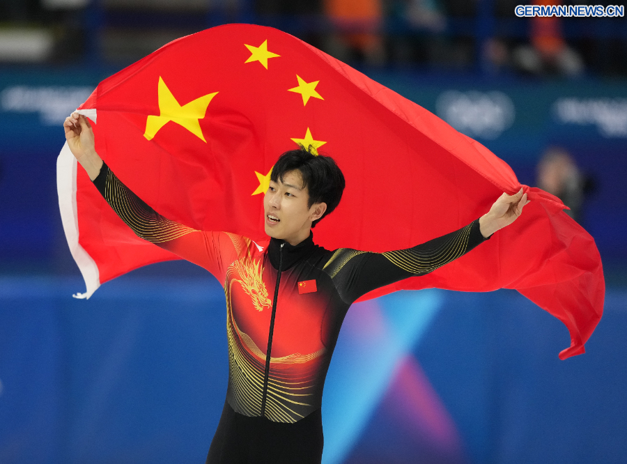 Sun Long aus China gewann am Donnerstag Silber im 1.000-Meter-Shorttrack-Eisschnelllauf der Männer und holte damit Chinas erste Medaille in dieser Disziplin bei den Olympischen Winterspielen 2026 in Mailand-Cortina. (Xinhua/Xue Yuge)