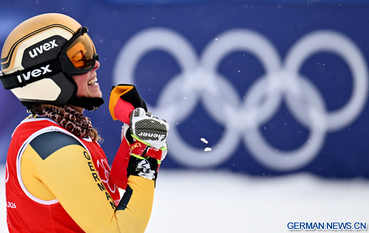 LIVIGNO, 21. Februar 2026 (Xinhua) -- Daniela Maier aus Deutschland feiert während des Finales im Skicross der Frauen im Freestyle-Ski bei den Olympischen Winterspielen Milano Cortina 2026 in Livigno in Italien, 20. Februar 2026. (Xinhua/Zhang Hongxiang)